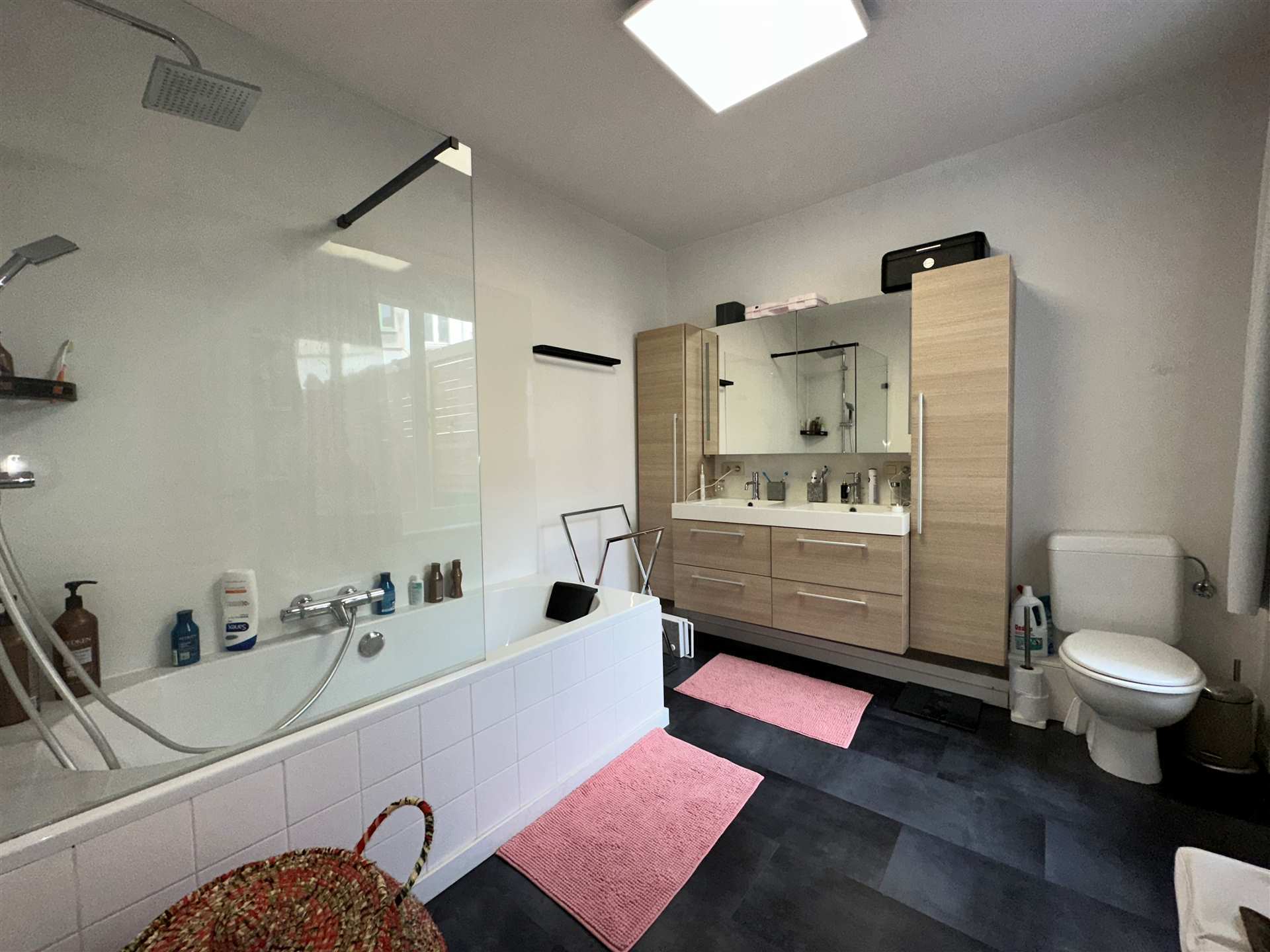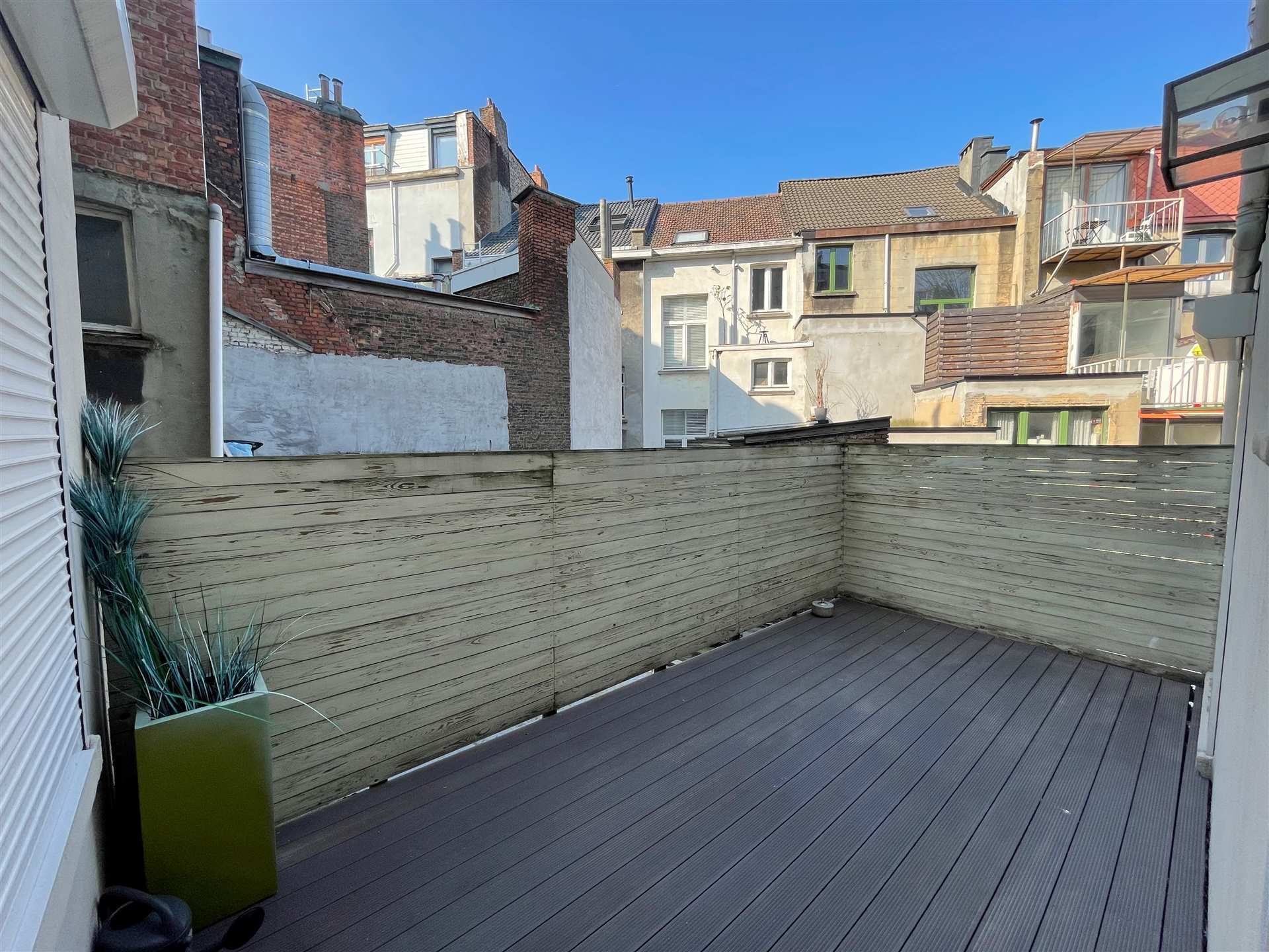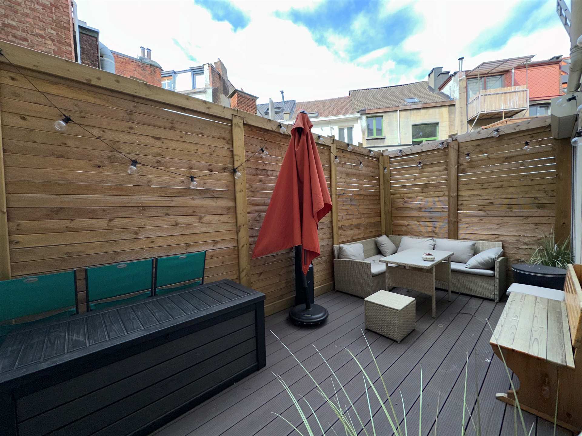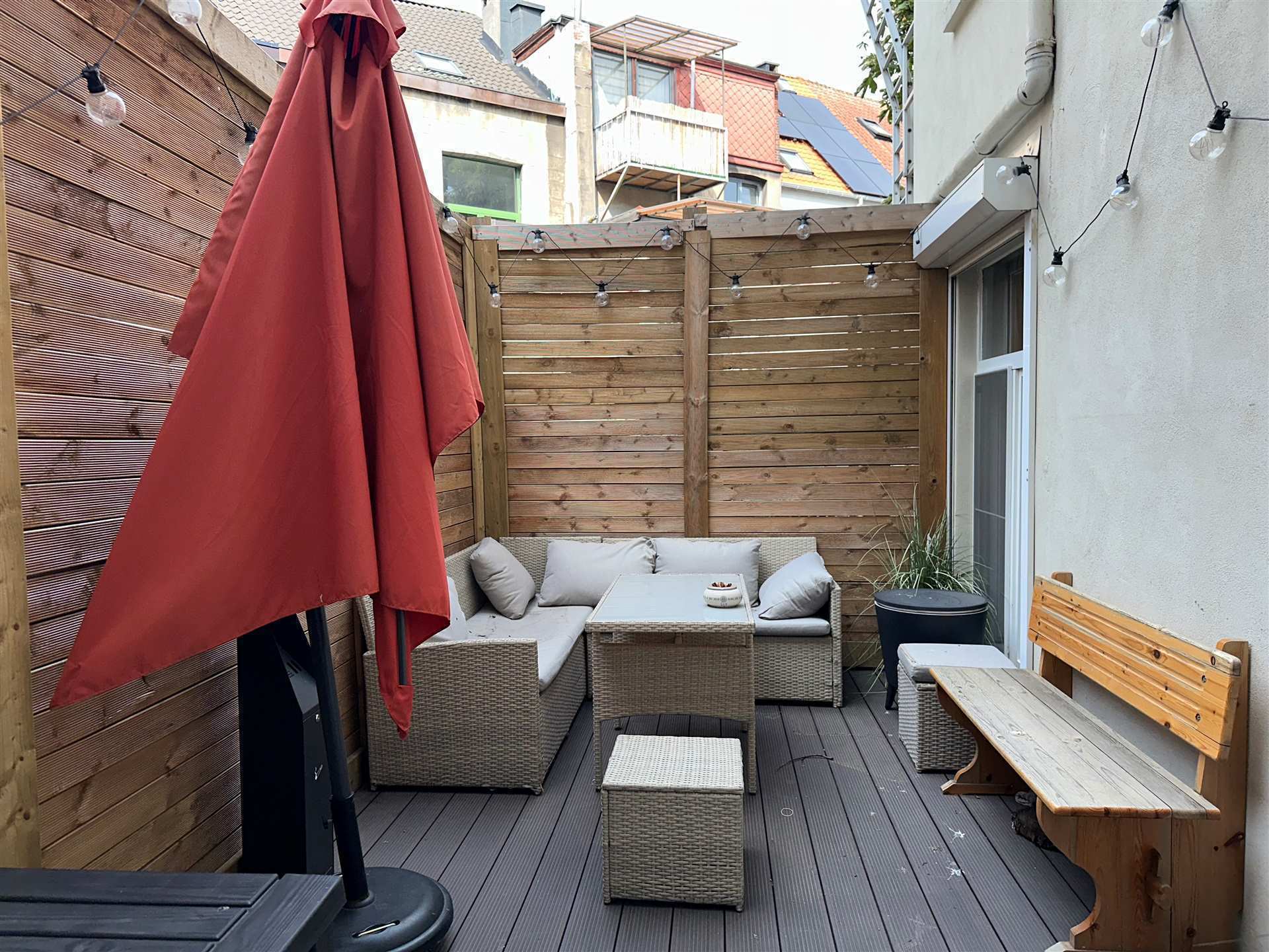 Dit leuke gerenoveerde appartement bevindt zich op de 1e verdieping en is bereikbaar met de trap. Het leefgedeelte is opgesplitst in 2 ruimtes, waarvan een woonkamer en een eetkamer met ernaast de volledig ingerichte open keuken. Achteraan bevindt zich de 1ste slaapkamer (ca. 14m²). Vanuit deze kamer bereikt men de 2de slaapkamer (ca. 10m²). De badkamer is voorzien van een ligbad met douchecombinatie, een dubbel lavabomeubel en een toilet. Verder is er nog een apart gastentoilet. De berging beschikt over een aansluiting voor wasmachine / droogkast. Op het ruime terras kan men genieten van zon en rust.