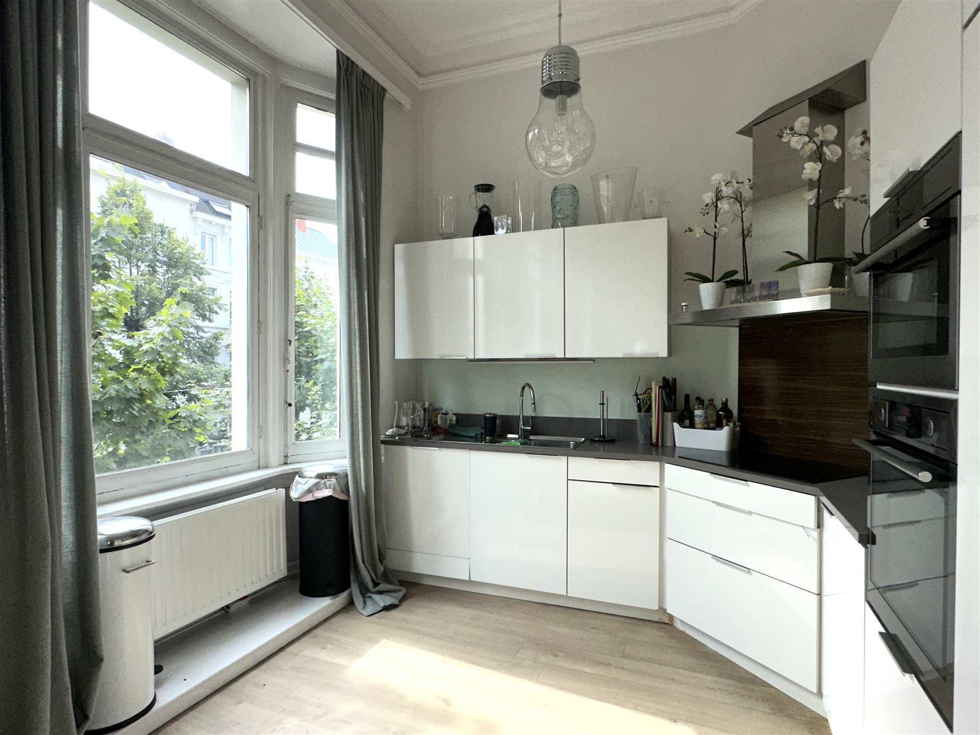 Dit aangename appartement beschikt nog over originele elementen; ornamenten, marmeren schouwen, ...