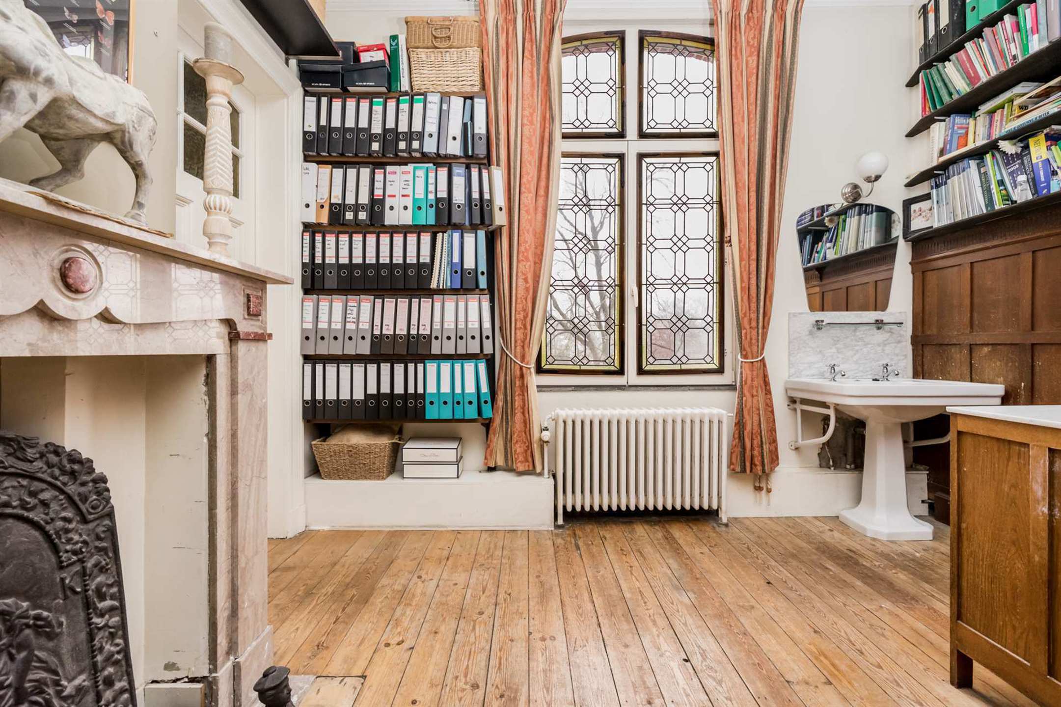 Verder is er momenteel een aparte praktijkruimte met wachtruimte en afzonderlijke ingang, ideaal voor vrije beroepen of extra woonfunctie. Aansluitend vind je een vergaderzaal, bureauruimte en atelier, die desgewenst nog kunnen heringericht worden tot een andere functie.