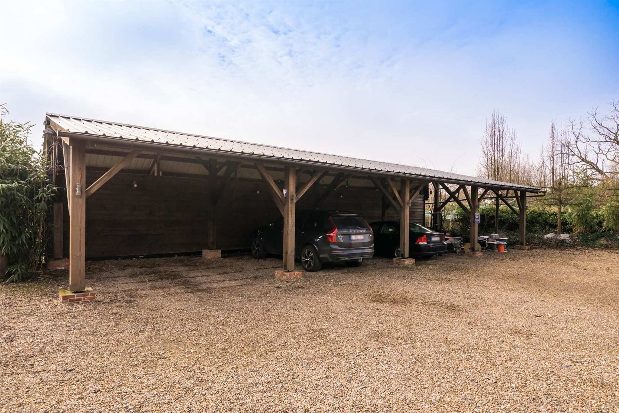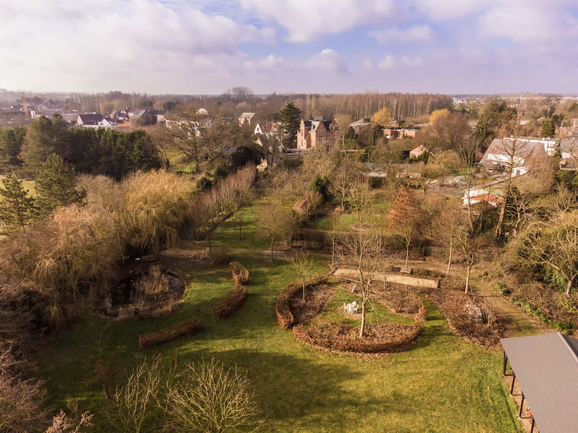 Het perceel is een groene oase met aangelegde siertuin, appelboomgaard en speelse graszones. Dankzij de uitgestrekte oppervlakte, de indeling van het domein en de rustige, natuurlijke omgeving is deze eigendom bovendien uitermate geschikt voor het houden van paarden of andere dieren.