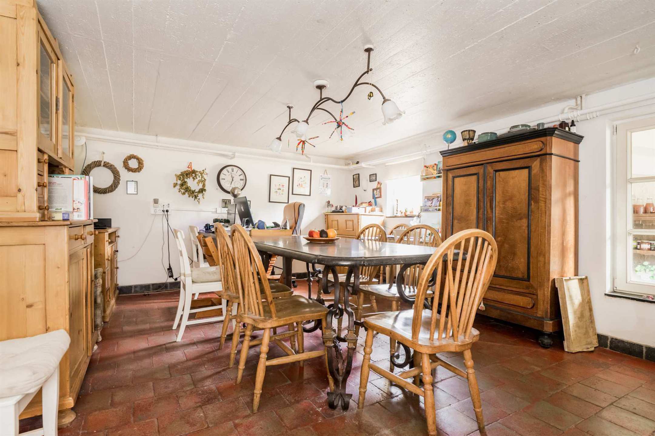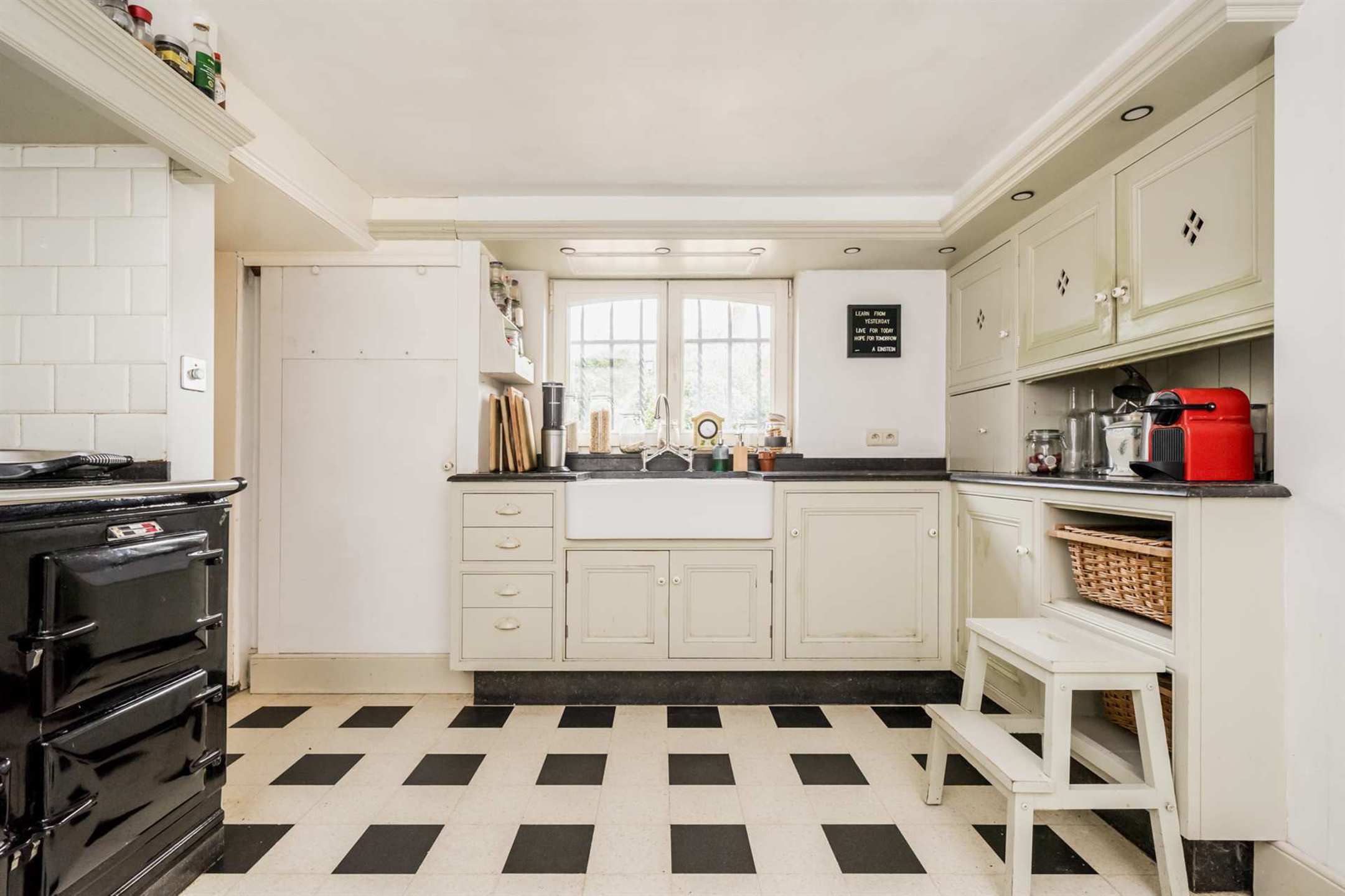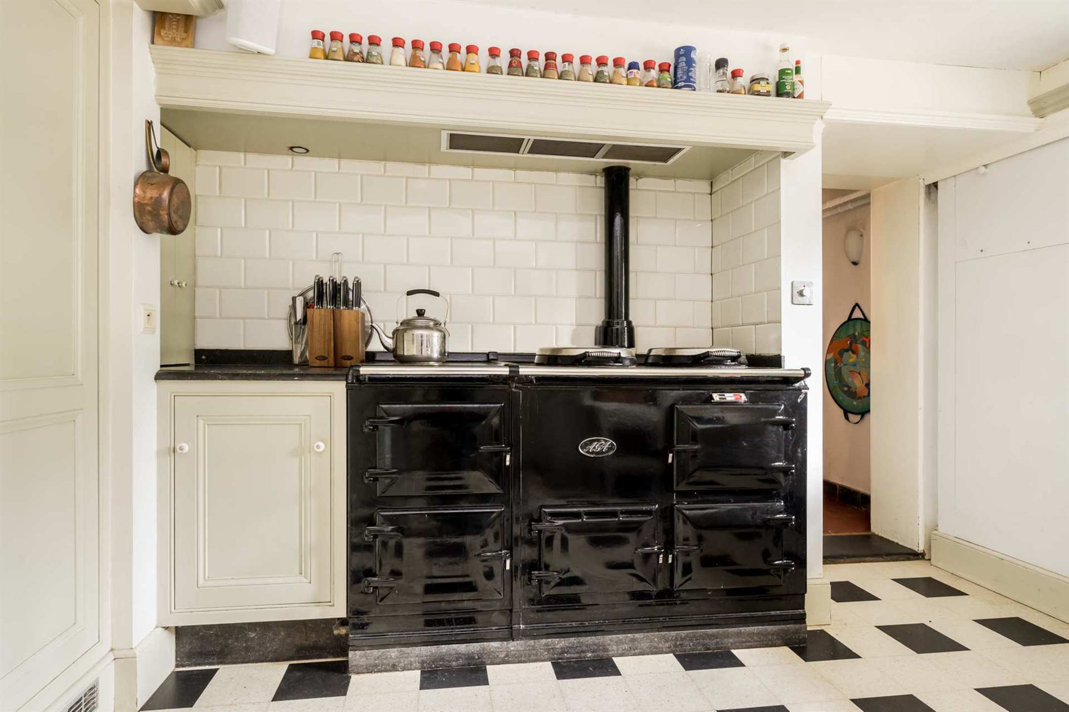 In het souterrain bevindt zich de volledig uitgeruste keuken waarbij het AGA-gasfornuis centraal staat als ware eyecatcher. De aangrenzende eetkamer biedt een intieme sfeer dankzij het lager gelegen niveau. Daarnaast vind je hier ook een wijnkelder, wasruimte en ruime berging.