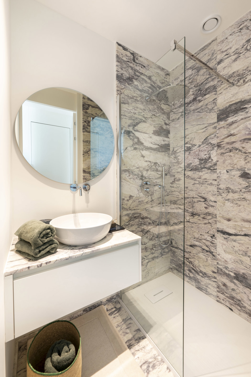 The apartment has 2 to 3 bedrooms, a room for dressing and 2 bathrooms with respectively a bath and a walk-in shower. The bedrooms also open onto the terrace.