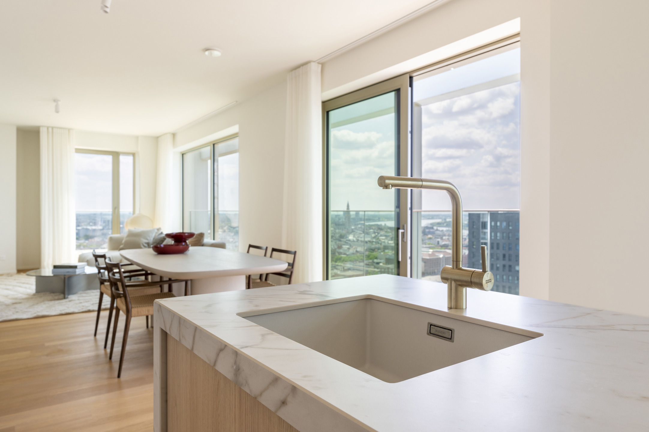 This new construction penthouse exudes luxury from the common entrance hall to the apartment. Via the 3 elevators one reaches this apartment on the 23rd and highest floor.