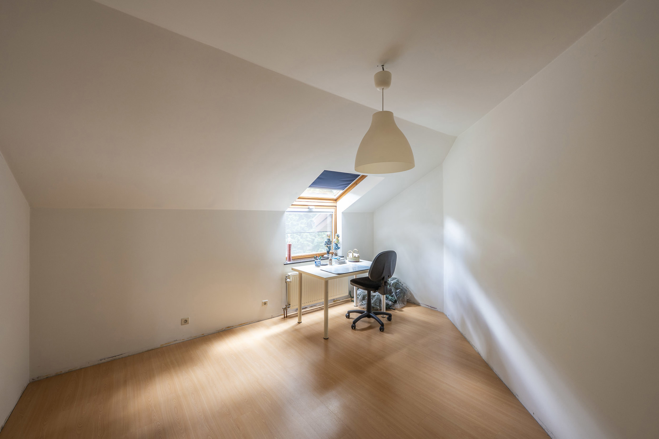 Achteraan vind je een ruime berging met toegang tot de tuin. De dubbele garage biedt voldoende plaats voor twee wagens en extra opbergruimte.