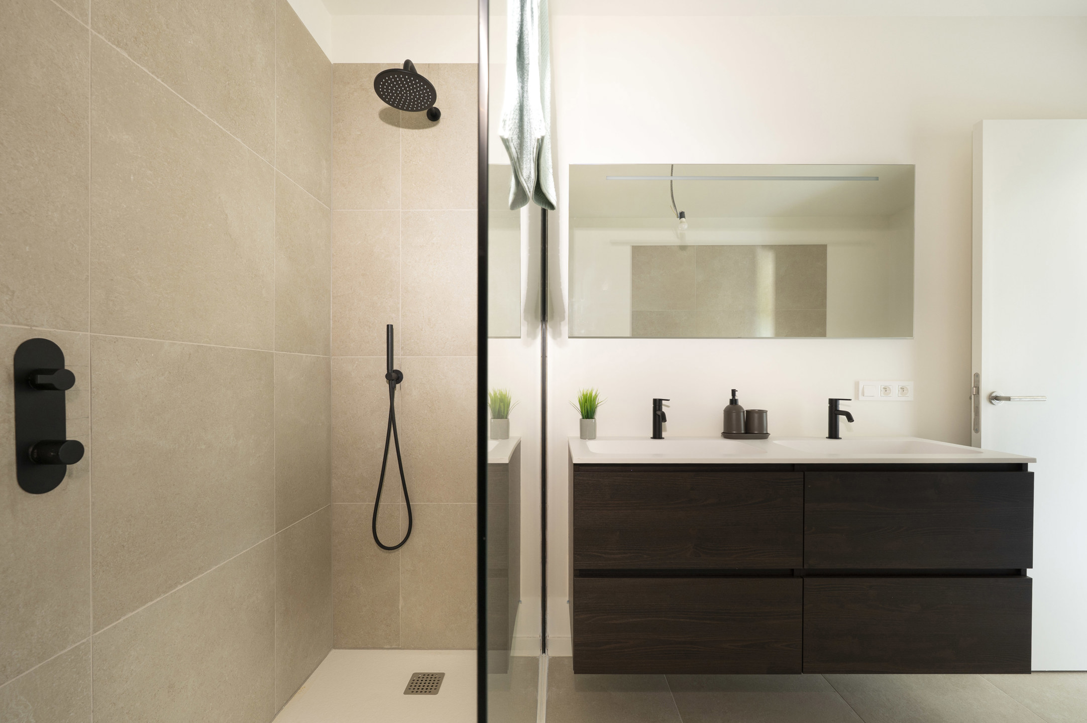 The apartment is located on the 1st floor and can be reached by stairs or elevator. Through the entrance hall with separate toilet you enter the bright living room. Through a large sliding window you can access the spacious terrace. The living room has an open kitchen equipped with all the necessary appliances (refrigerator, stove, oven, dishwasher, etc.). Next to the kitchen there is also a handy storage room with connection for the washing machine. This apartment has 2 bedrooms and a bathroom with double sink and shower, a separate toilet.