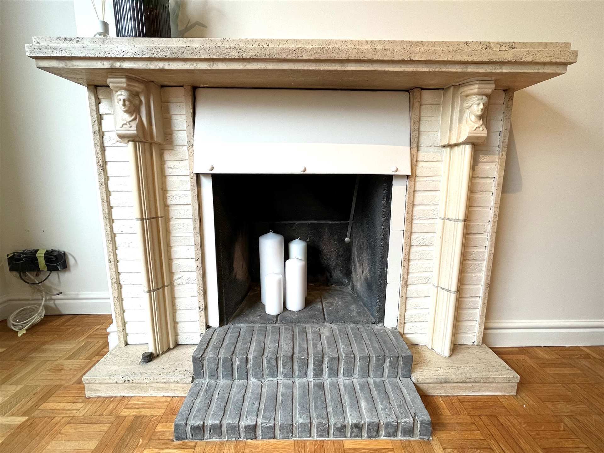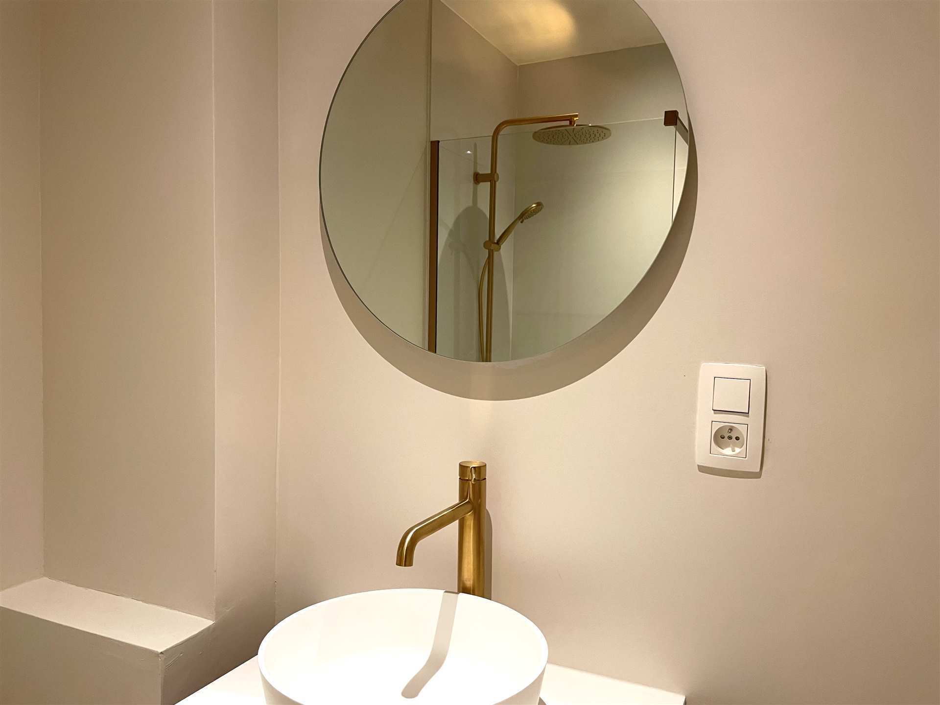 Cet appartement rénové au 2ème étage est accessible par ascenseur ou par les escaliers. Le spacieux salon conserve sa cheminée authentique et son parquet en mosaïque d’origine. Dans tout l’appartement, vous retrouverez des éléments en cuivre de bon goût, des poignées de porte aux robinets. La cuisine ouverte dispose d’un coin petit-déjeuner pour profiter agréablement de votre café du matin. La cuisine est entièrement équipée et aménagée. Un branchement pour machine à laver est disponible dans le local de stockage intérieur.