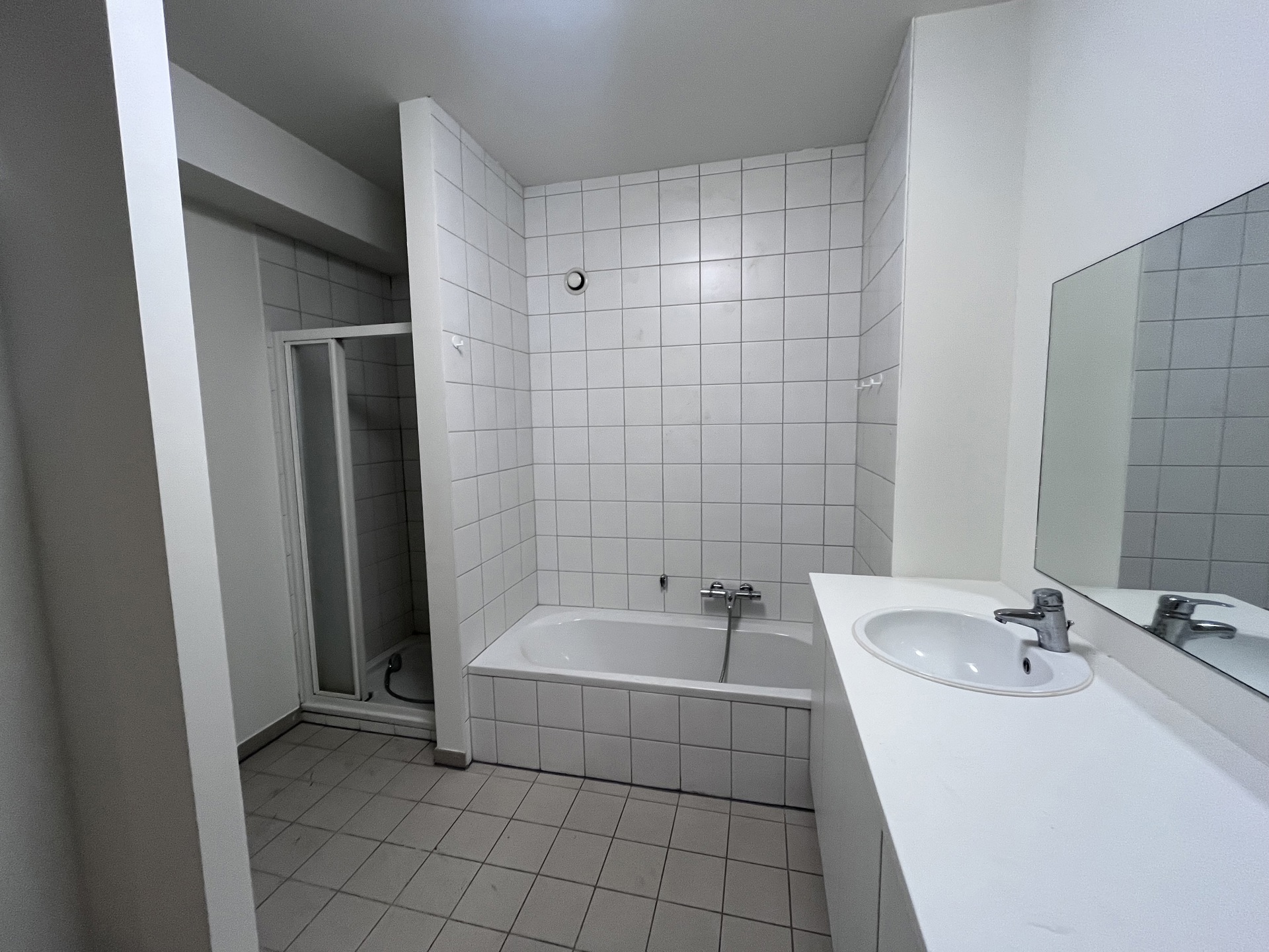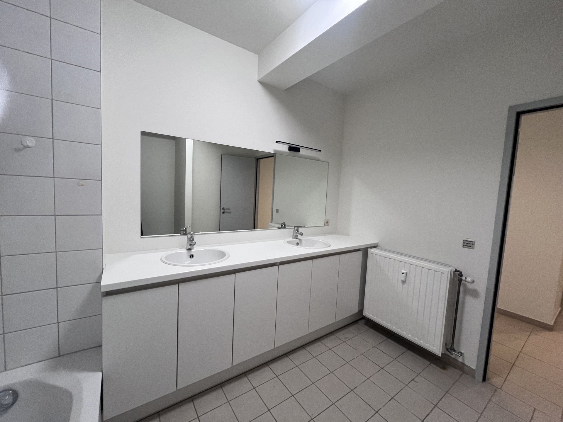 U betreedt het appartement vanuit de ruime leefruimte op parket. Aansluitend met de leefruimte is er de open keuken. Deze bestaat uit een elektrische kookplaat, een oven en een ijskast met vriesvak. In de keuken heeft men de mogelijkheid om een vaatwasser of wasmachine te plaatsen. Door de grote raampartijen baadt de leefruimte in een zee van licht. Het terras is de ideale plek om van de zon te genieten! Verder beschikt het appartement over 1 slaapkamer, een apart gastentoilet, berging en badkamer. De badkamer omvat een douche, een bad en een dubbele wastafel met spiegel. Tenslotte is er in het gebouw ernaast een gemeenschappelijke wasruimte en een fietsenstalling voorzien. Huurprijs: 980 €/maand. Maandelijkse kosten: 133 €/maand (voorschot verwarming, water, elektriciteit) + 212 €/maand (gemeenschappelijke kosten onderhoud en verlichting gebouw + lift). Totaal: 1.325 €/maand exclusief televisie en internet. Onmiddellijk beschikbaar. Dit appartement kan ook gehuurd worden op vennootschap! De minimum huurtermijn bedraagt 1 jaar.