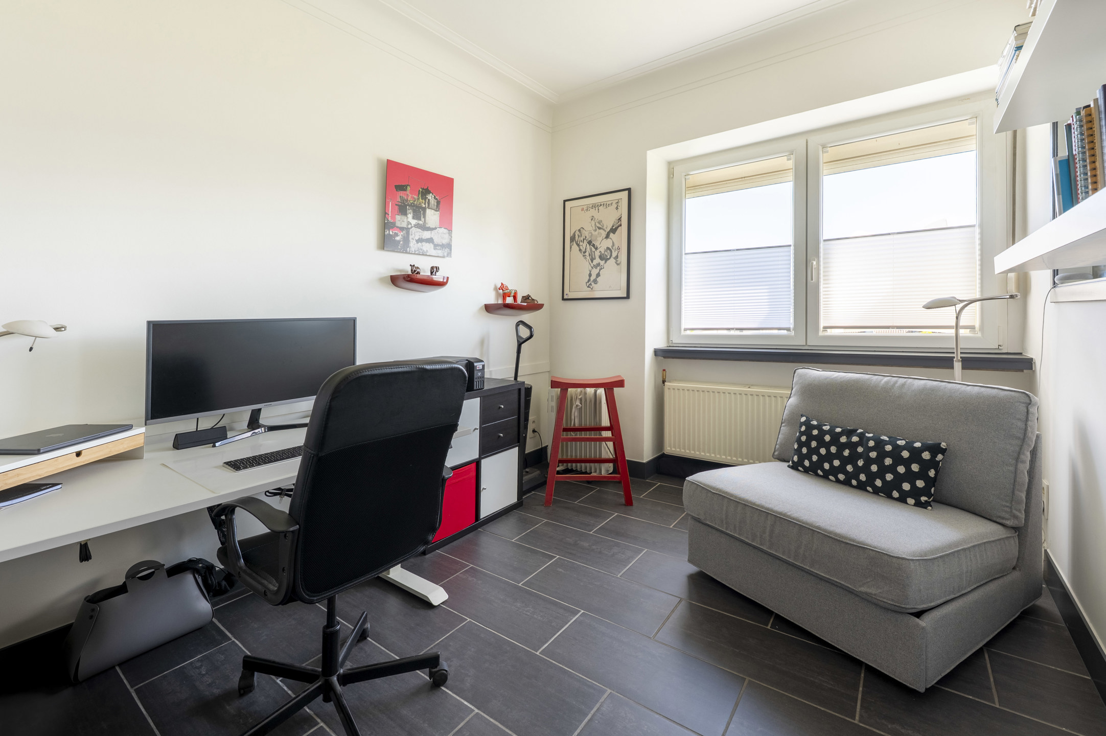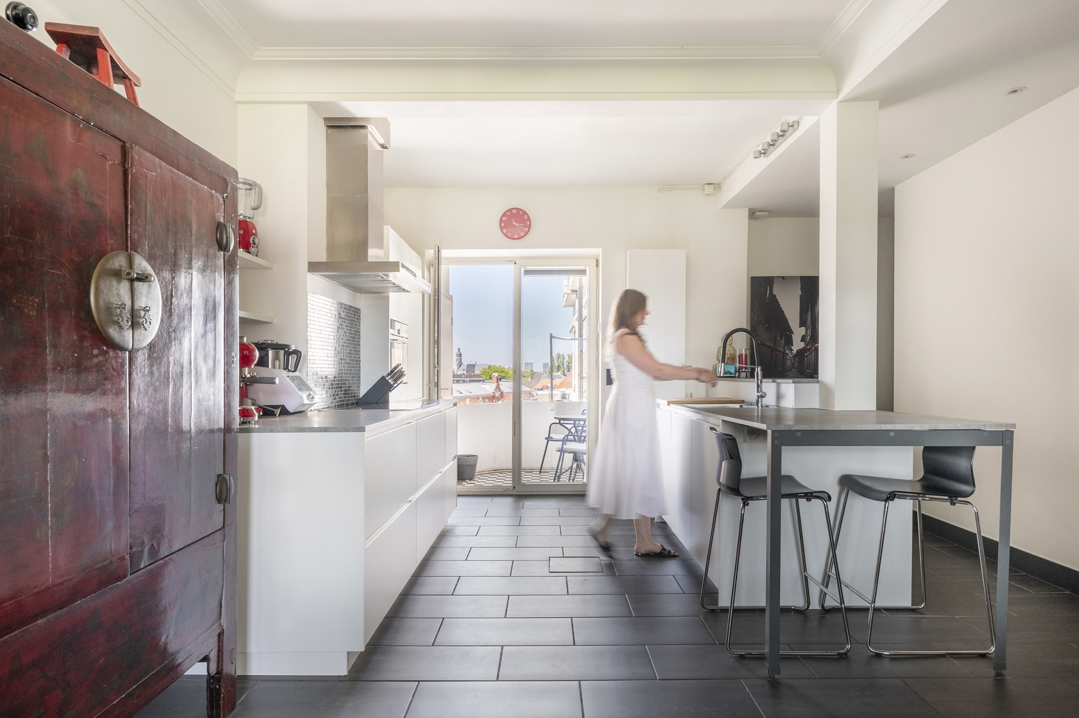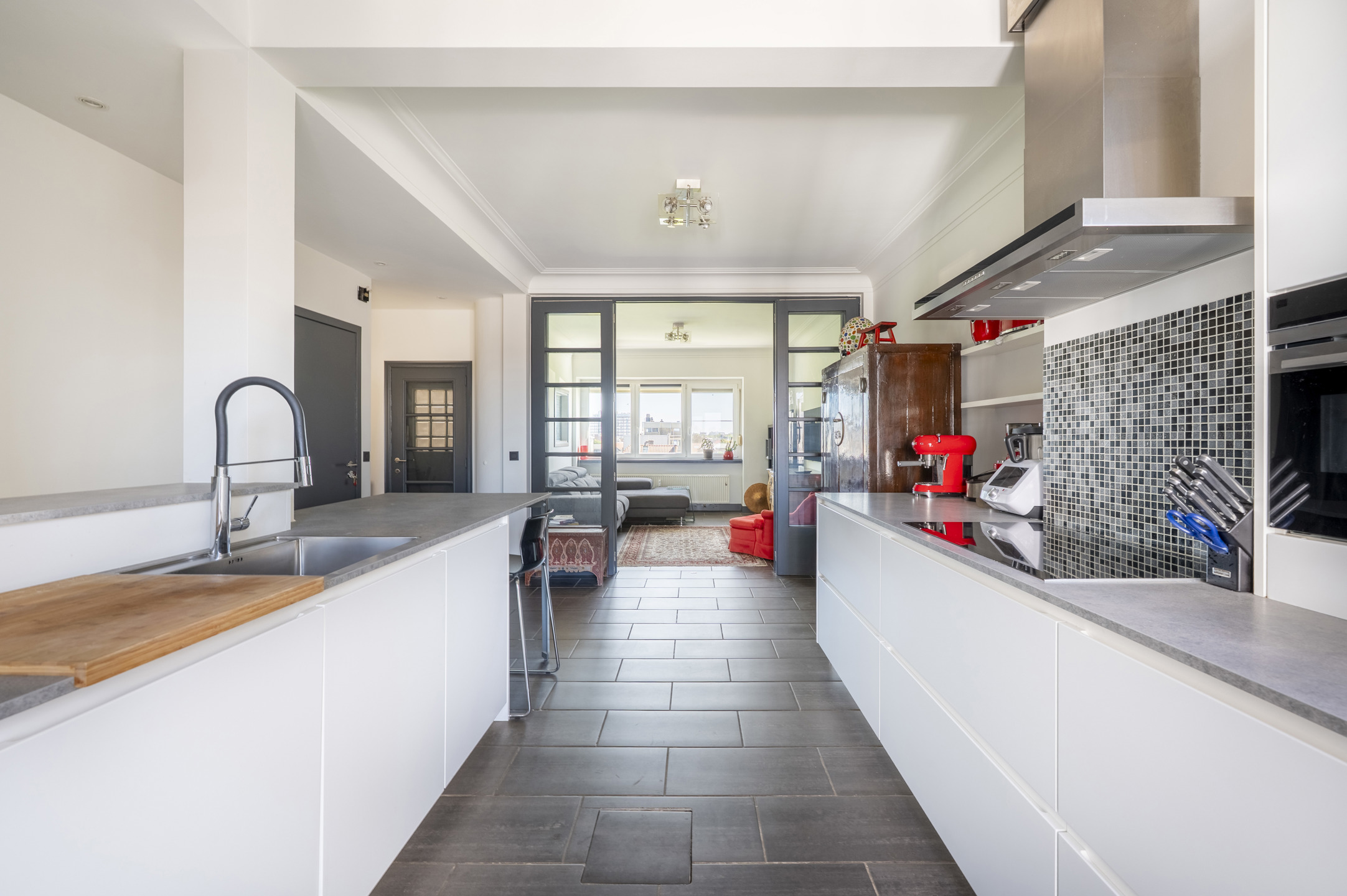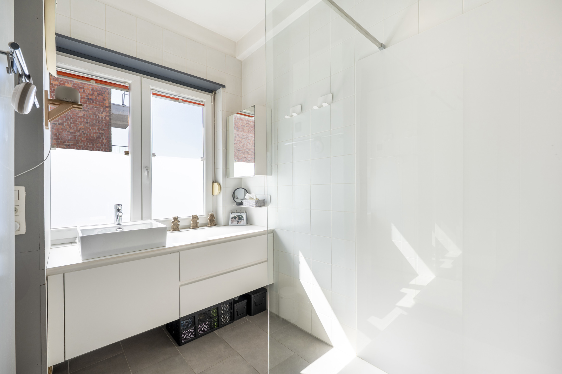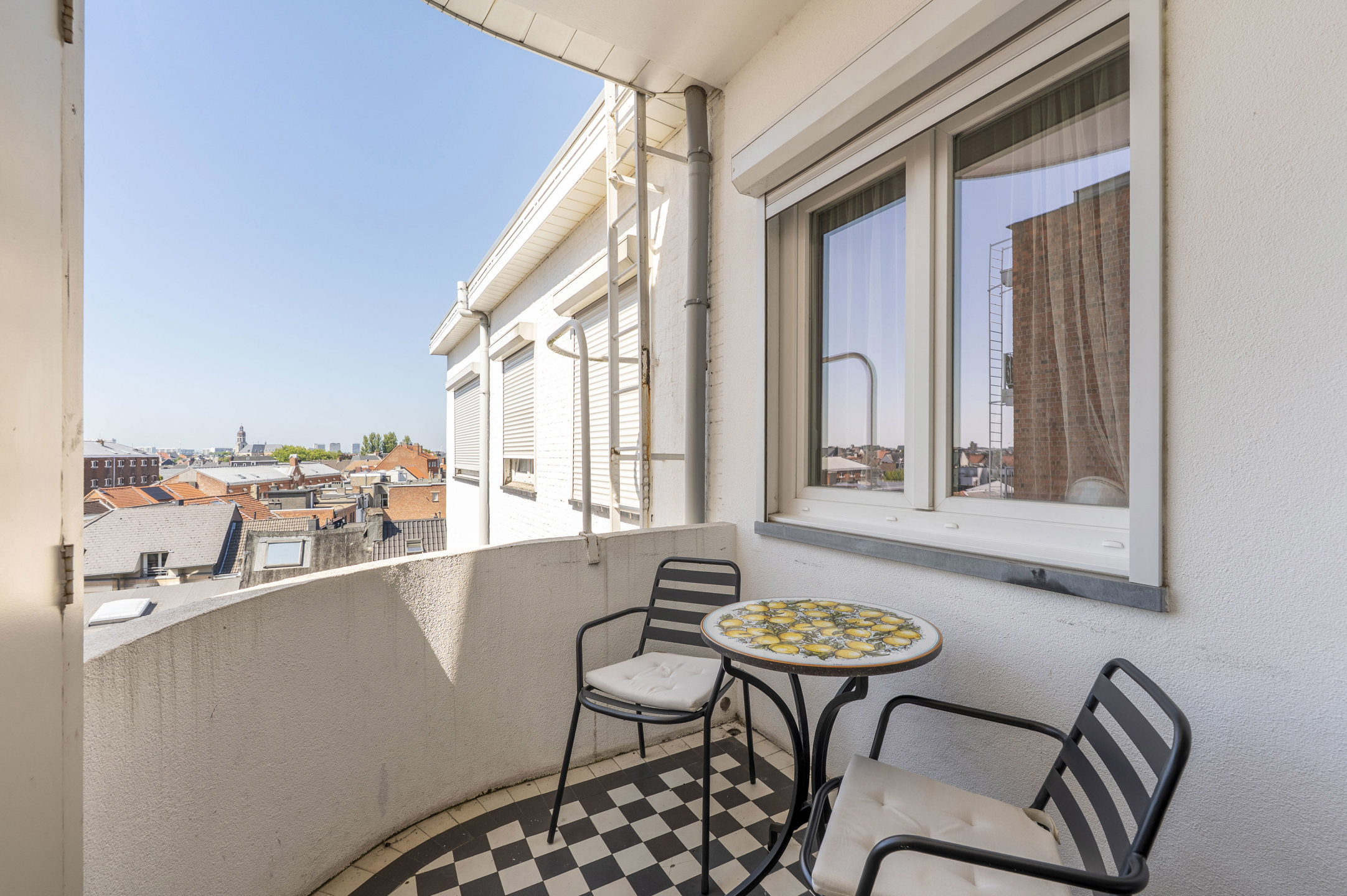 Op de 6e en hoogste verdieping van een kleinschalige residentie aan de Britselei bevindt zicht dit lichte appartement welke bereikbaar is per lift en trap. De leefkeuken vormt het hart van de woning en is uitgerust met alle nodige toestellen, waaronder een inductiekookplaat, dampkap, oven, koelkast en diepvries. De matwitte, greeploze kasten zijn afgewerkt met een tijdloos grijs keramisch werkblad. Aansluitend vindt u een gezellig terras met veel privacy en een prachtig uitzicht over de stad. Aan de voorzijde ligt de woonkamer, in open verbinding met de keuken. Direct ernaast bevindt zich één slaapkamer, momenteel ingericht als bureau. In de achterbouw zijn er nog twee ruime slaapkamers, waarvan één met ingemaakte kasten. De badkamer is voorzien van een wastafelmeubel, inloopdouche en handdoekradiator. Daarnaast beschikt het appartement over een wasberging, apart toilet en vestiaire. In de kelderverdieping is er een privatieve berging.