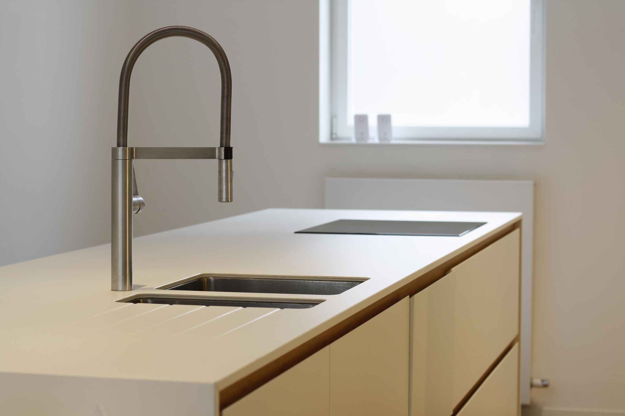 1e VERD: leefruimte met open keuken, groot kookeiland, inductie kookplaat & dampkap, oven, stoomoven, microgolf, grote koelkast, grote diepvries.
