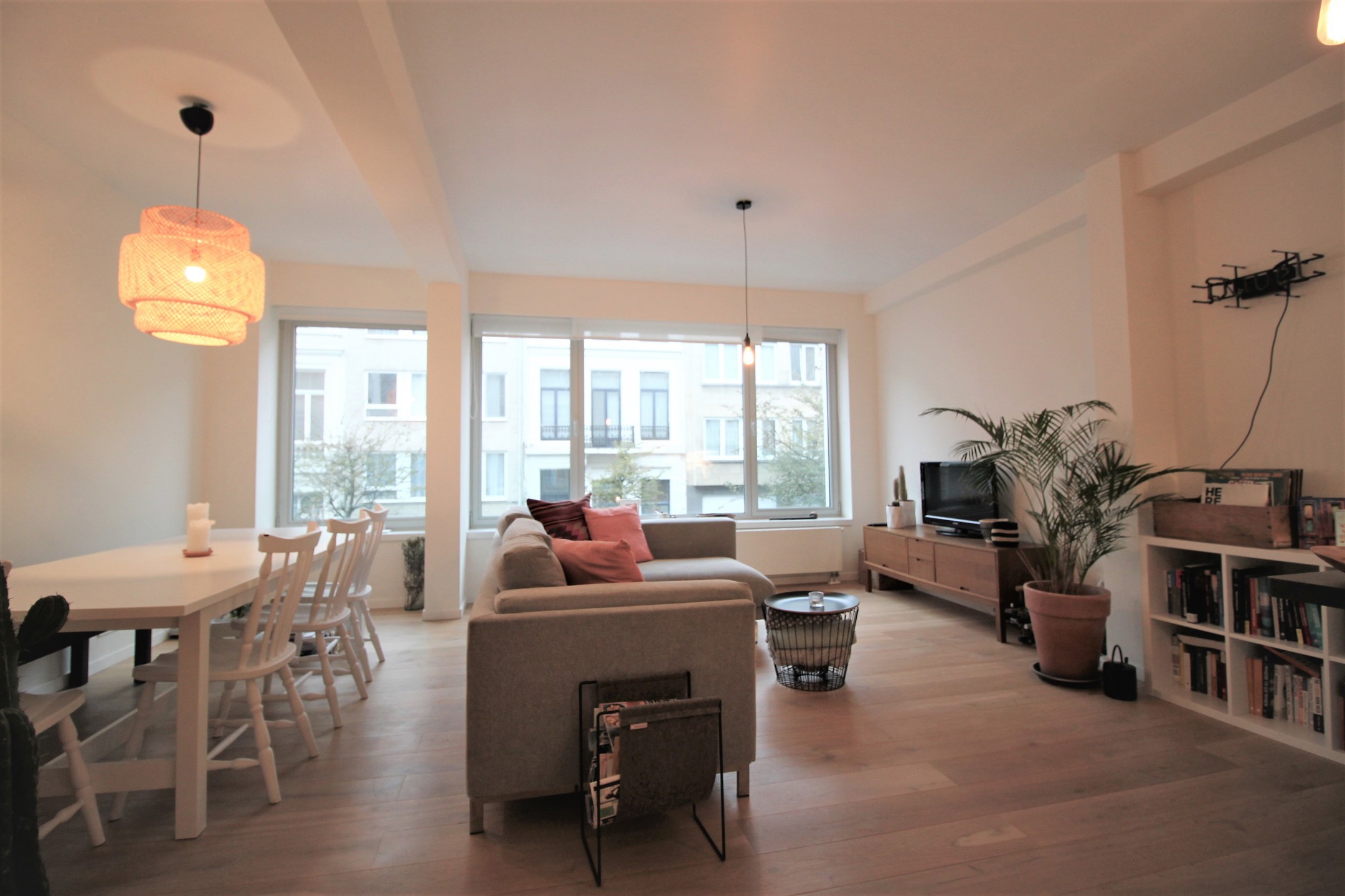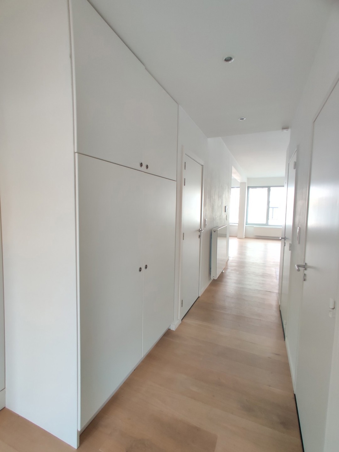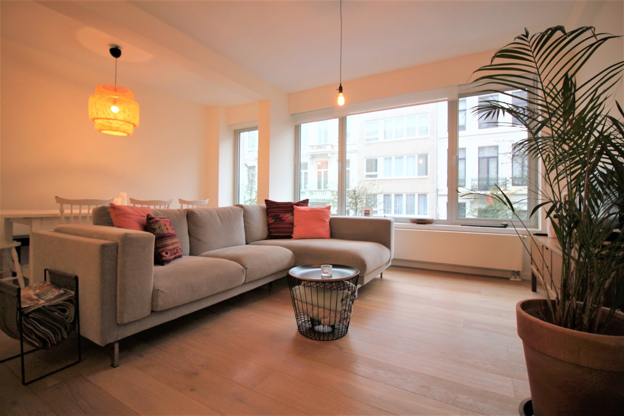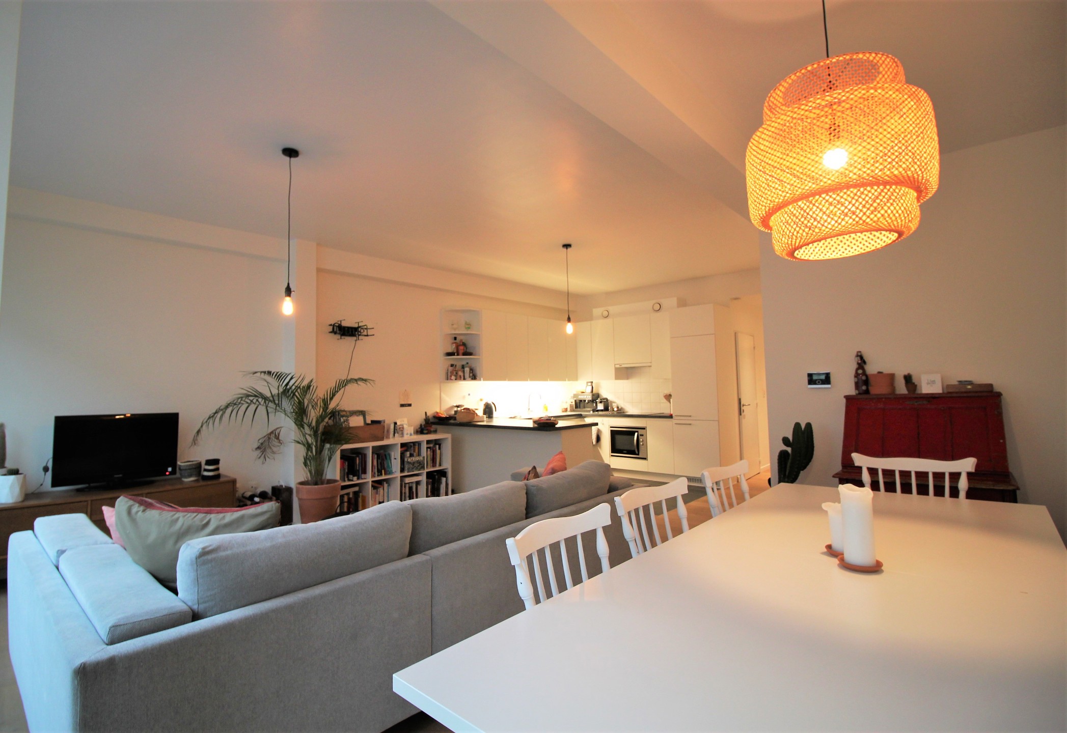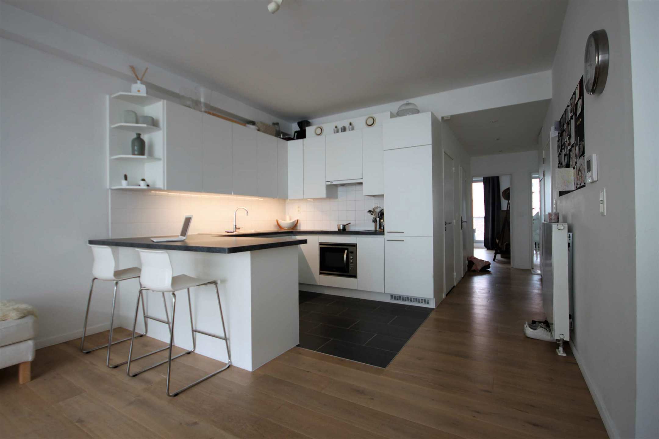 Ontdek dit lichte appartement op de vierde verdieping, gemakkelijk bereikbaar met zowel de lift als de trap. De stijlvolle woonruimte, voorzien van een mooie parketvloer, beschikt over een moderne open keuken met centraal eiland. De keuken is volledig uitgerust met hoogwaardige apparatuur: keramische kookplaat, vaatwasser, combi-oven, koelkast en vriezer. Grote ramen zorgen voor een overvloed aan natuurlijk licht, wat een warme en uitnodigende sfeer creëert.