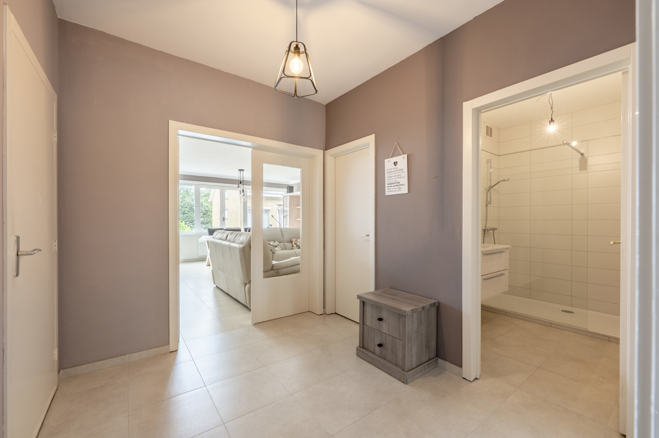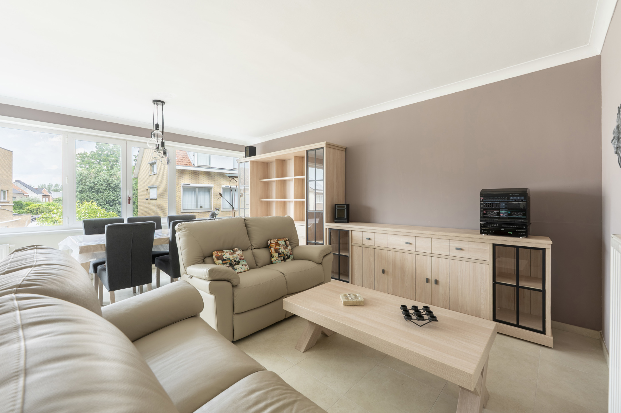 Het appartement heeft volgende indeling: zeer ruime inkomhal, gastentoilet, woon-en eetkamer, volledig geïnstalleerde open keuken met verplaatsbaar eiland, grote berging, praktische badkamer/douchekamer, twee slaapkamers waarvan 1 masterbedroom en tot slot een zonnig terras aan de achtergevel (toegang via de slaapkamers).