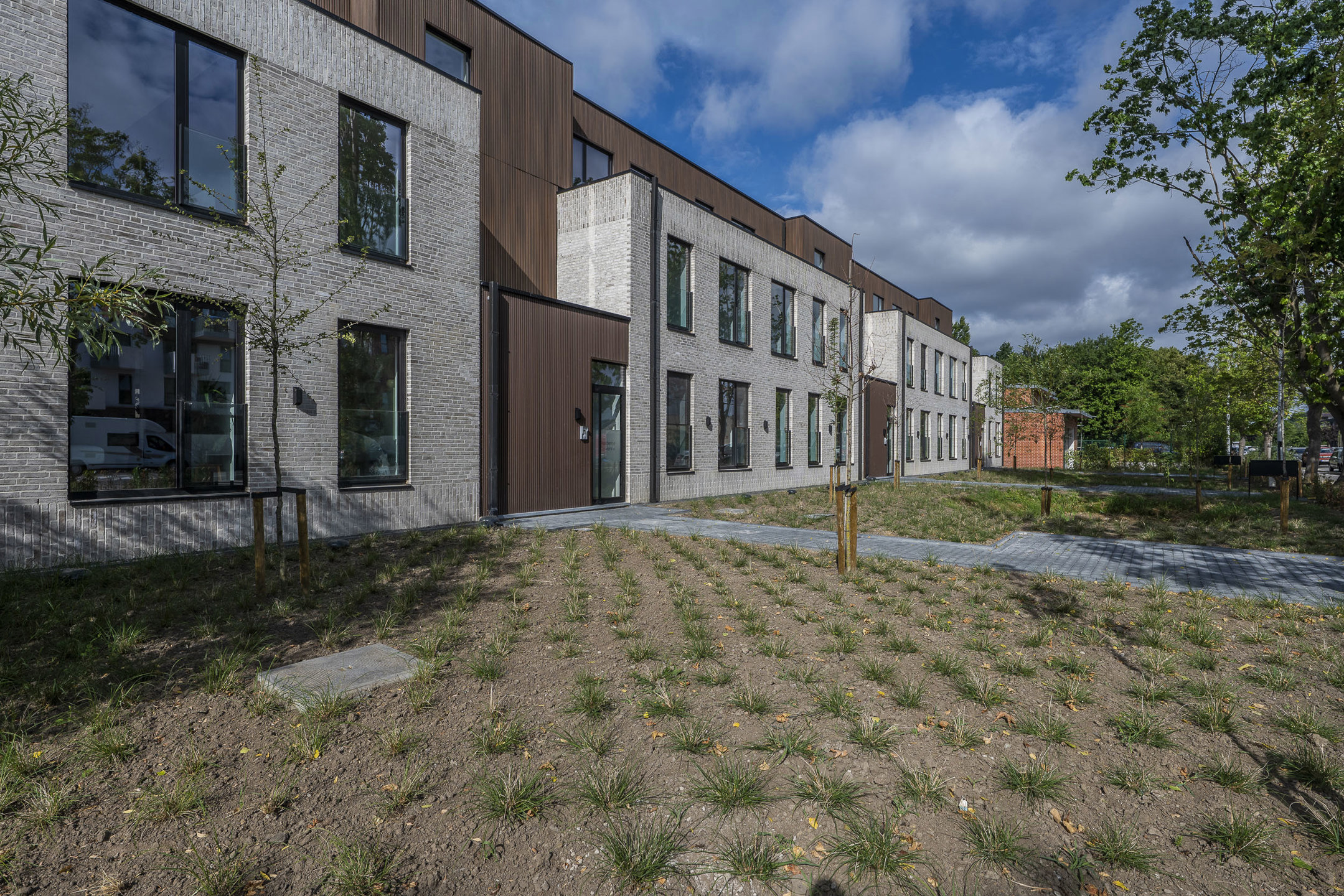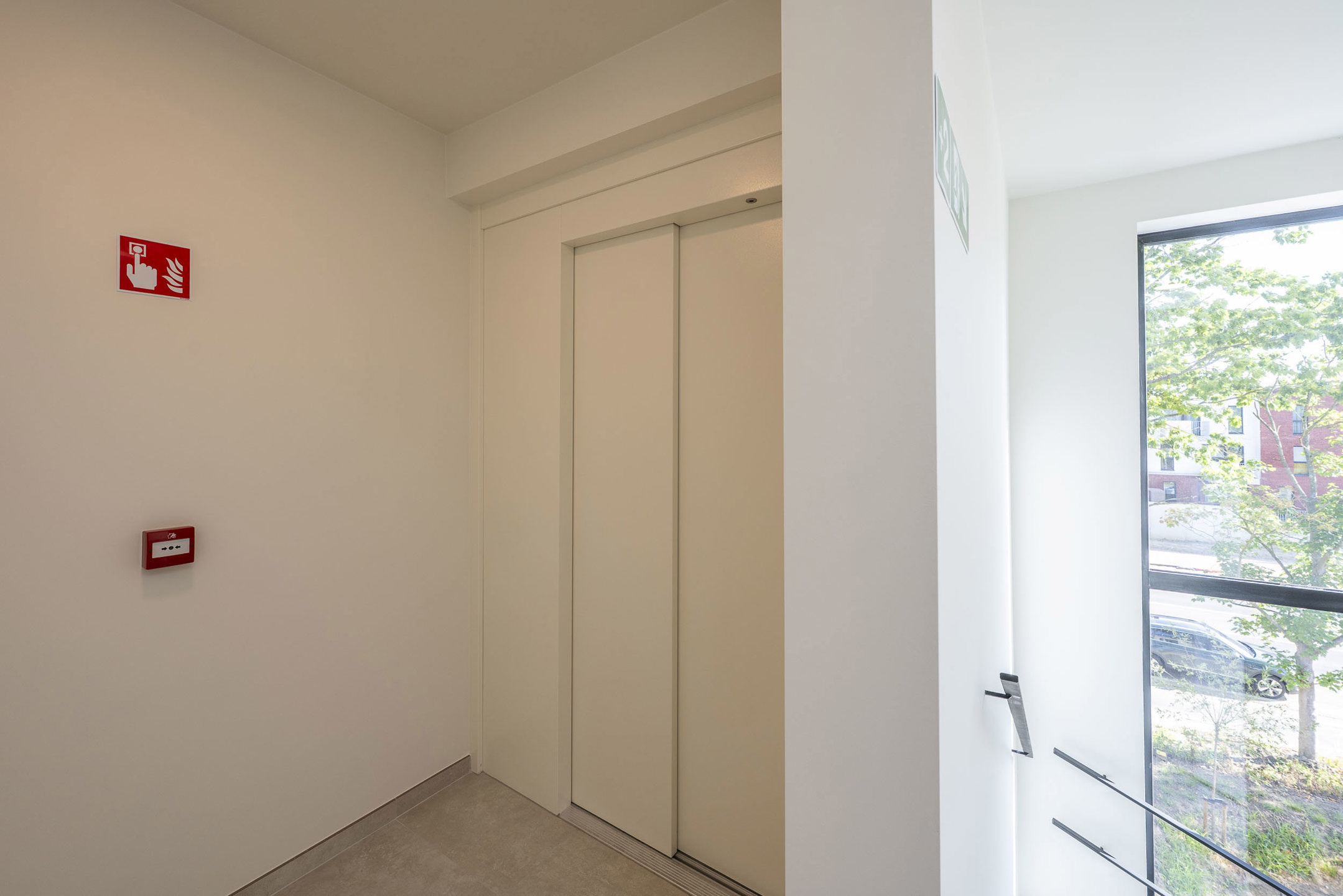 Toegang gebouw via Jubellaan + met auto/fiets of te voet via achtergelegen doodlopende Barbarastraat.