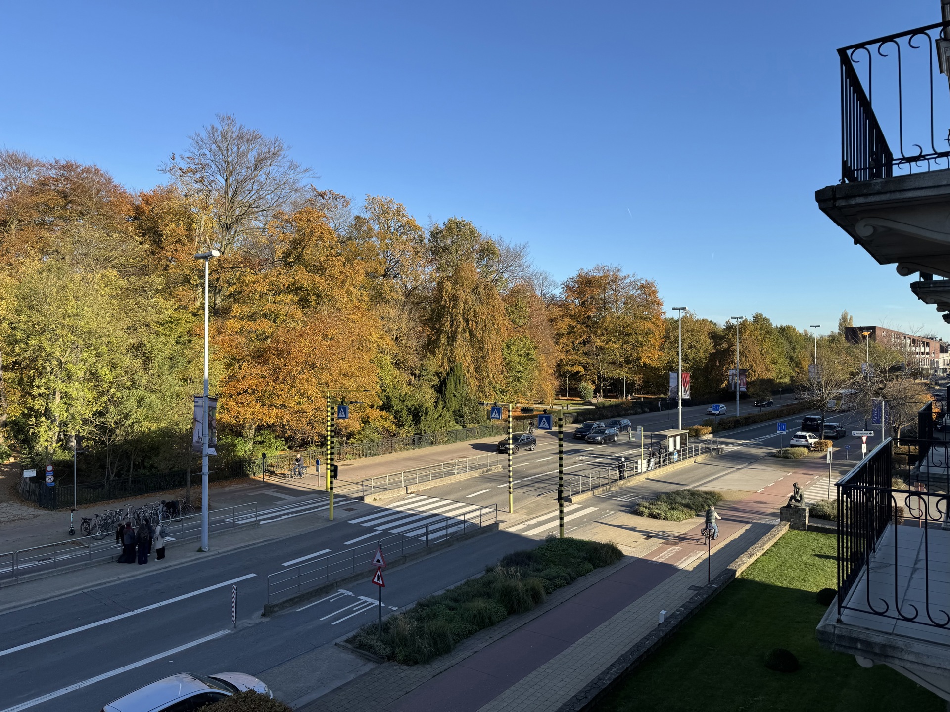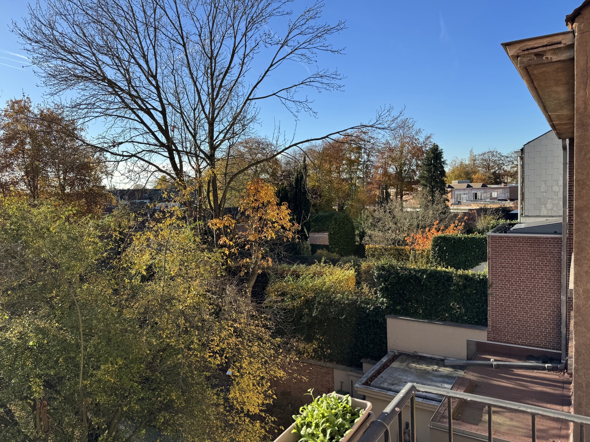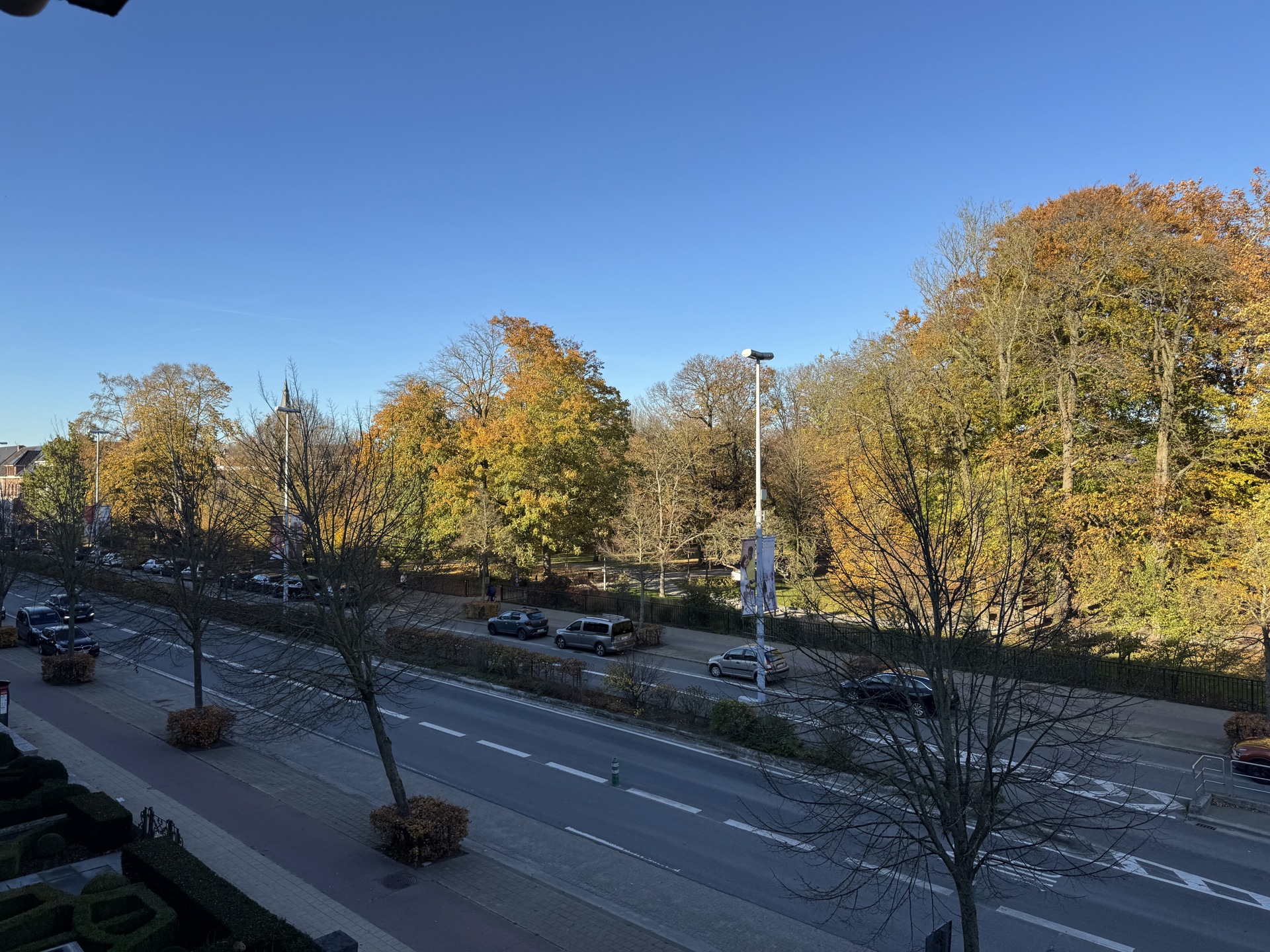 Dit appartement is gelegen op de 2de verdieping en is te bereiken via de trap of lift.Via de riante inkomhal met apart toilet en vestiaire komt u in de ruime leefruimte op massieve eiken parket. De leefruimte is zeer lichtrijk en kijkt uit op het stadspark. Doorheen het appartement zijn zeer mooie en kwalitatieve materialen gebruikt. Het appartement beschikt over 2 slaapkamers met ingemaakte kasten. 1 slaapkamer geeft uit op het zuidgericht terras. Er is een volledig nieuwe badkamer met inloopdouche en dubbele lavabo. De nieuwe keuken beschikt over een ijskast, vaatwasmachine, inductiekookvuur, etc. Bij het appartement hoort een zolder én een kelder.