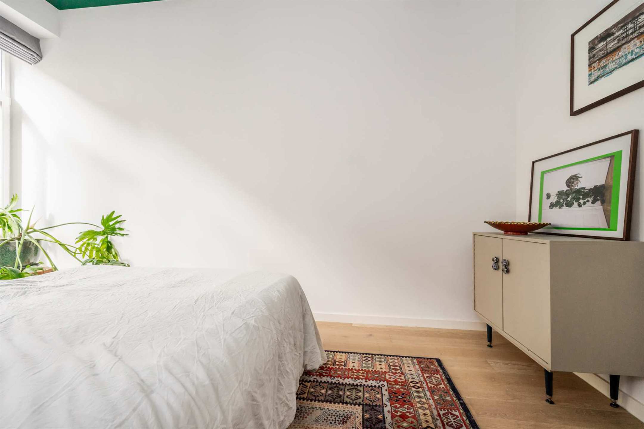 De gezellige en lichte leefruimte biedt genoeg plaats voor een L-vormige zetel of twee aparte zetels, een salontafel en een tv-meubel.