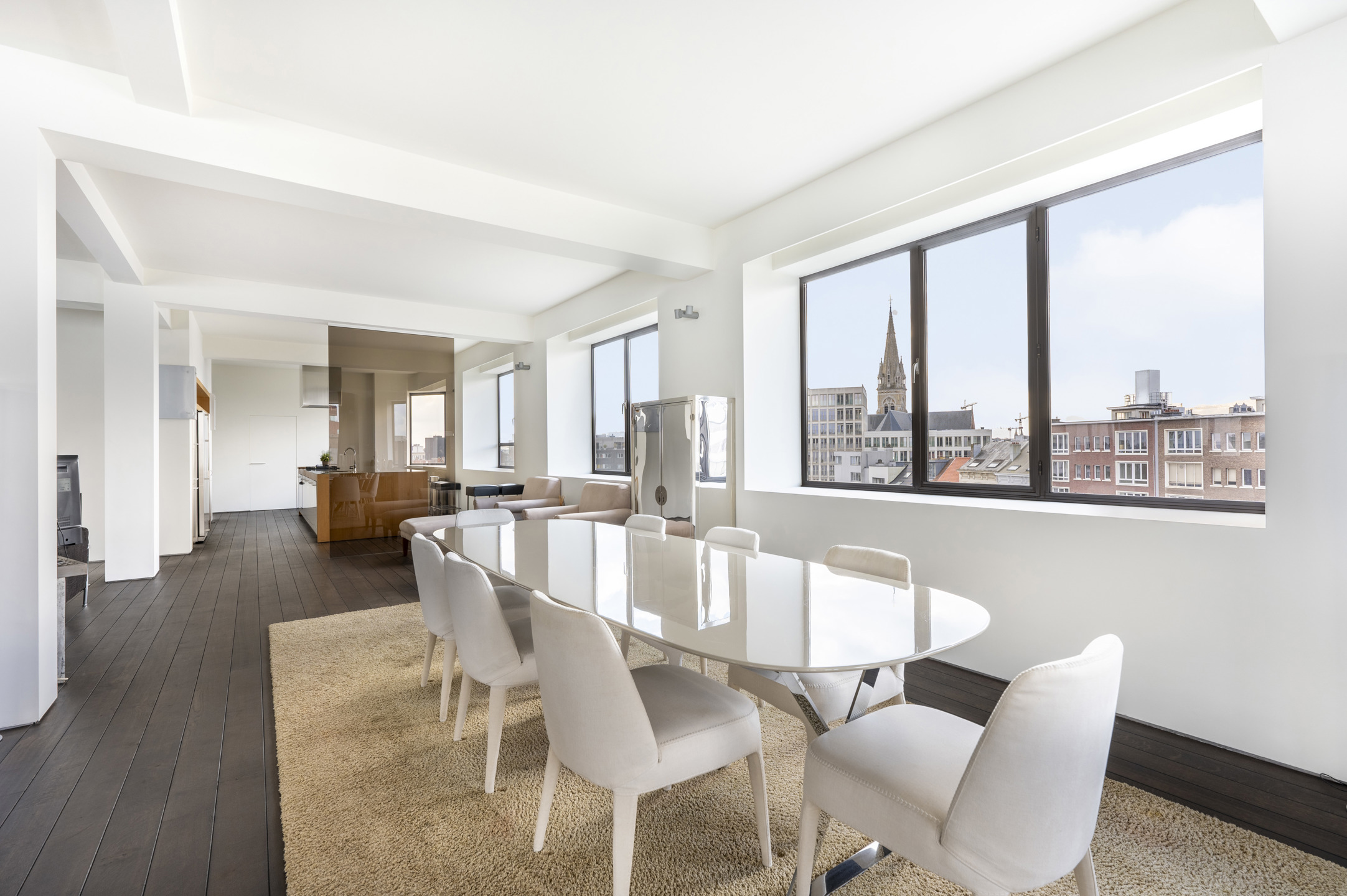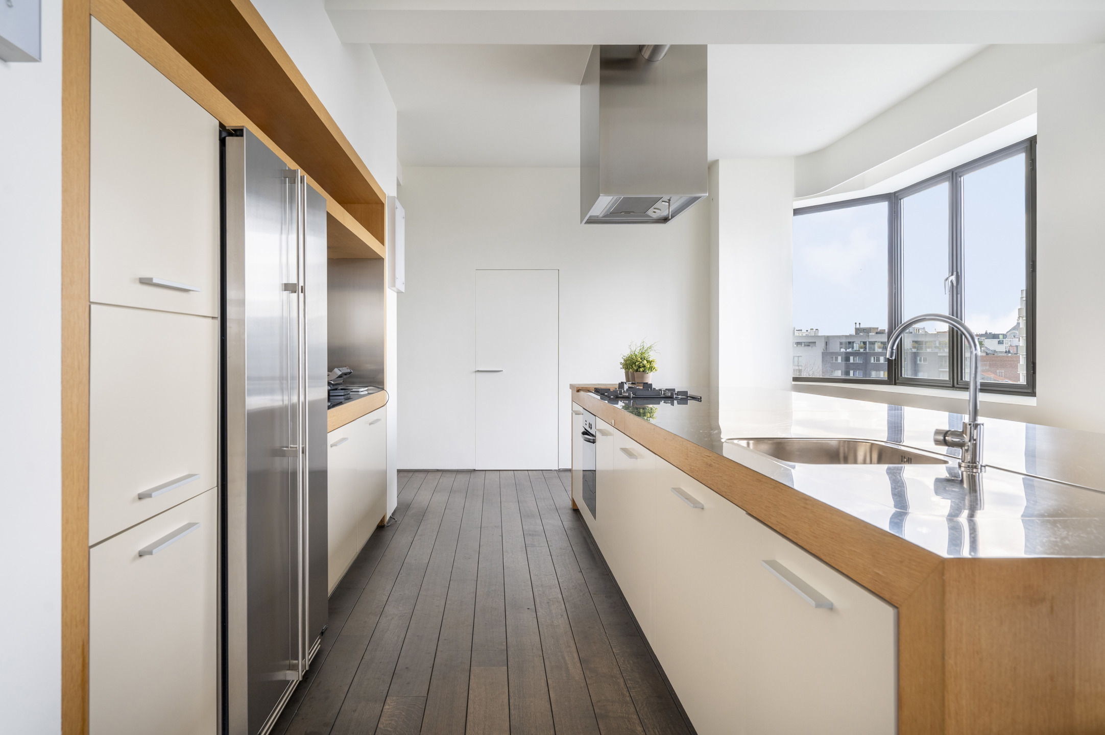 Indeling:Ontdek deze exclusieve loft met karakter, gelegen in het bruisende centrum van Antwerpen. Deze luxueuze en riante woonst van ongeveer 325 m² bevindt zich in een prachtig onderhouden art-decogebouw uit 1937, ontworpen door architect Apollon Lagache. De loft combineert een historisch kader met een hedendaagse afwerking, waarin elk detail getuigt van comfort en klasse. De stijlvolle mix van warme materialen zoals de donkere massieve parketvloer en koele, moderne elementen zoals de inox keuken en glazen wanden creëert een unieke en verfijnde sfeer.