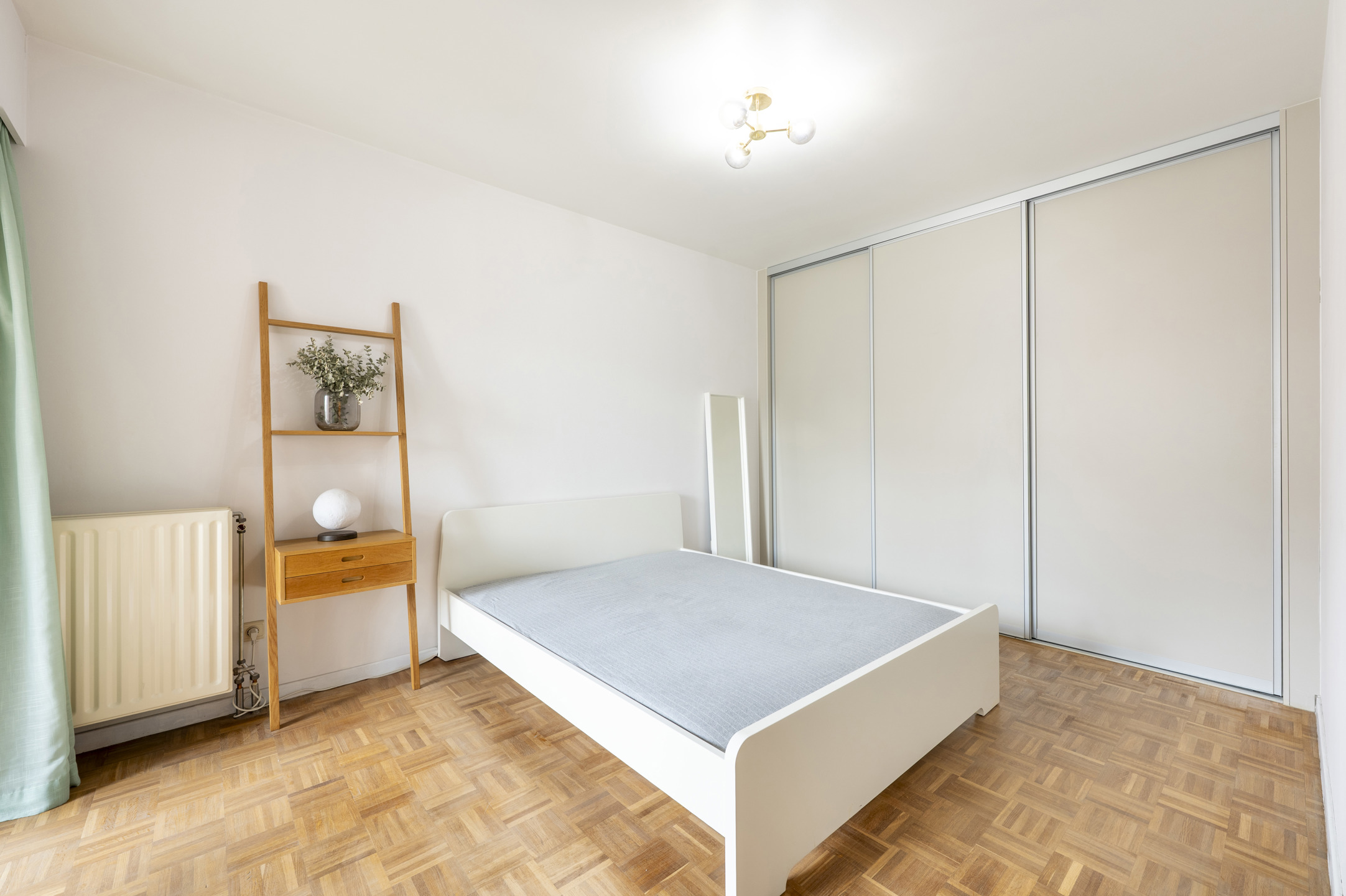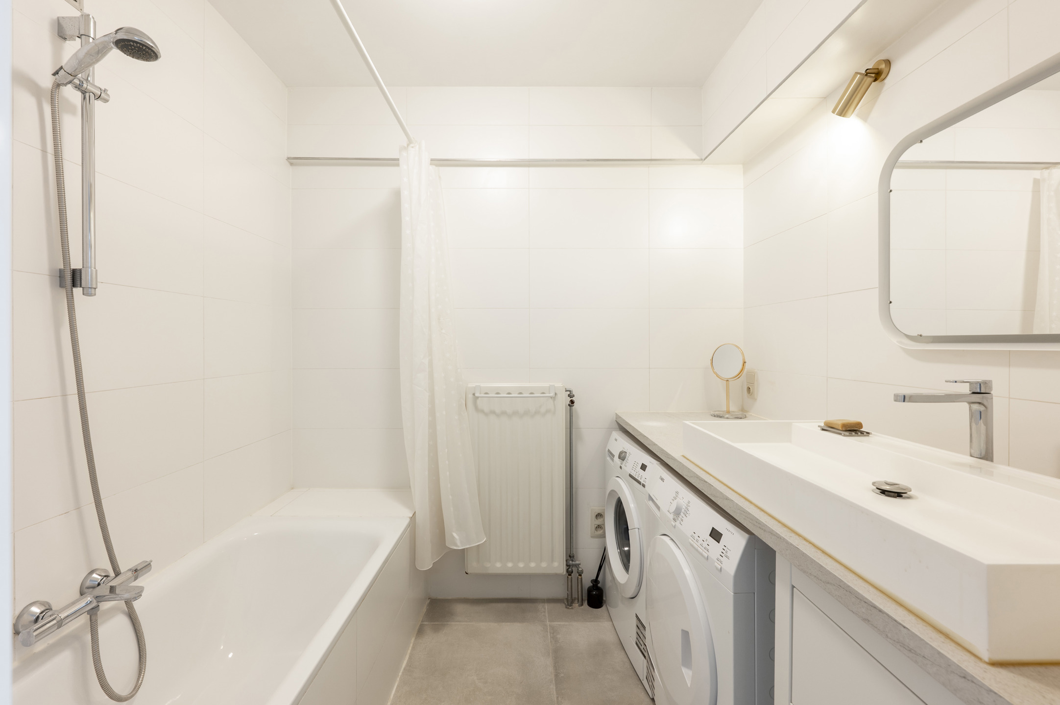 Het appartement beschikt over twee slaapkamers, waarvan de master bedroom uitblinkt in ruimte en directe toegang biedt tot een gezellig terras – ideaal om even tot rust te komen. Verder vind je een aparte toilet, een badkamer met ligbad en wastafelmeubel, en aansluiting voor wasmachine en droogkast.