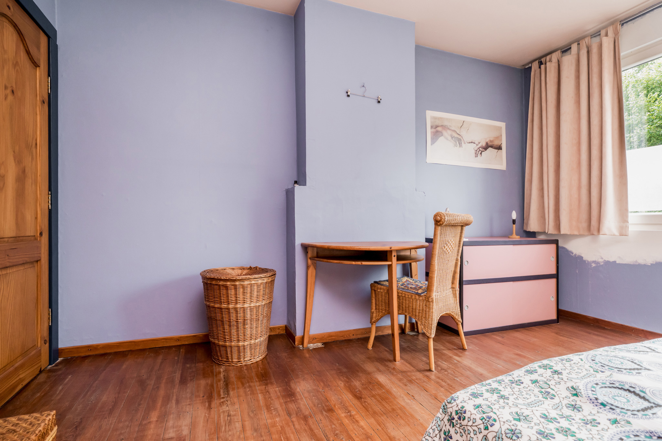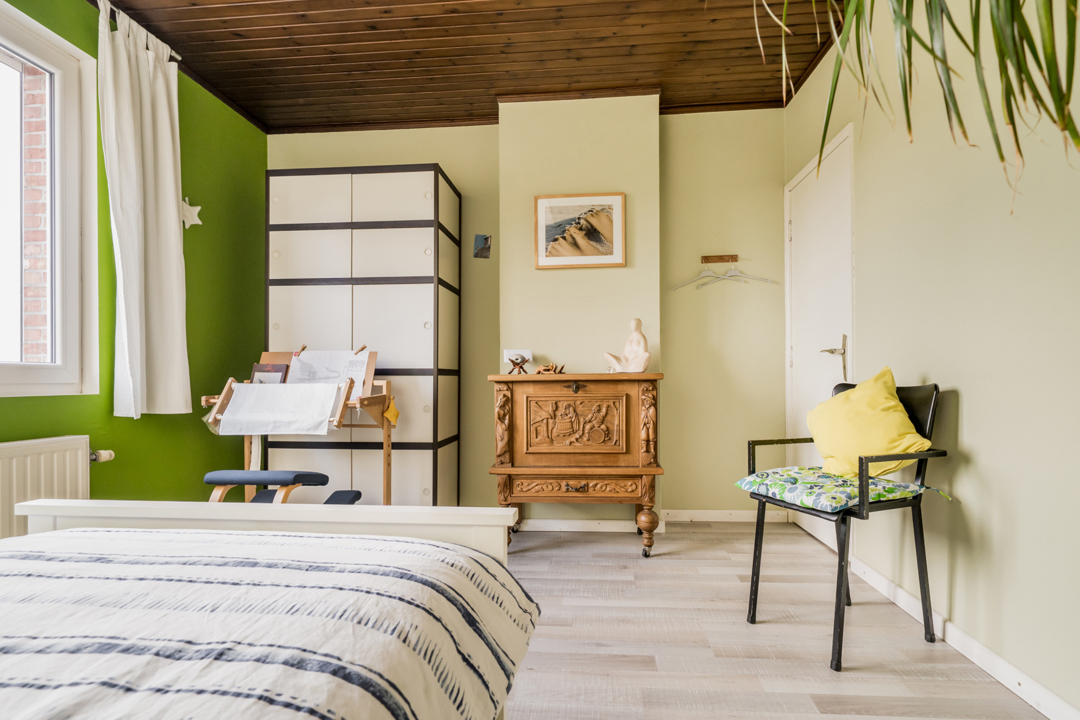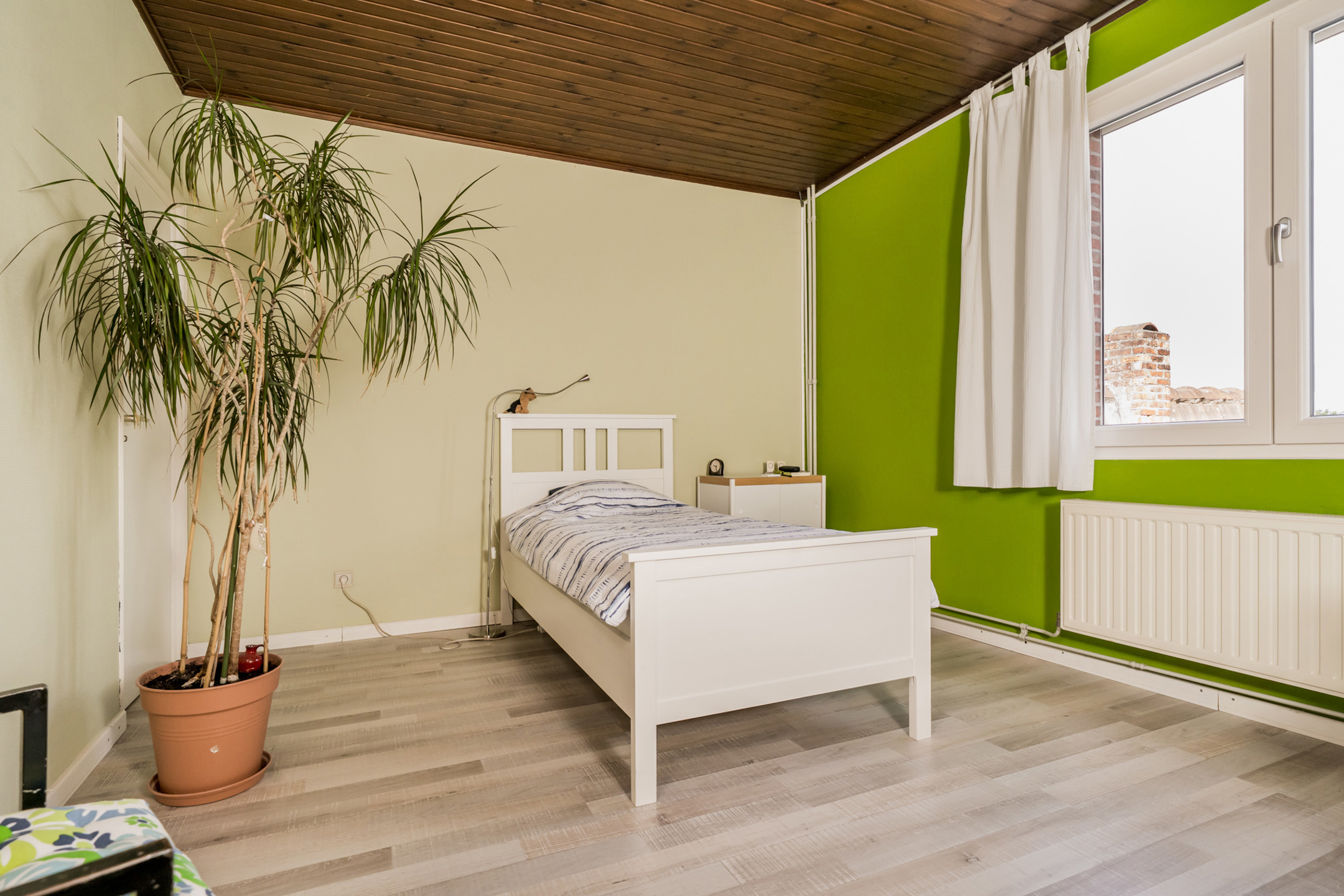 Via de trap kan je naar de eerste verdieping waar zich de masterbedroom bevindt. De tweede slaapkamer is een doorloopkamer met toegang naar de zolder en is naast slaapkamer ook ideaal als bureau of speelruimte.