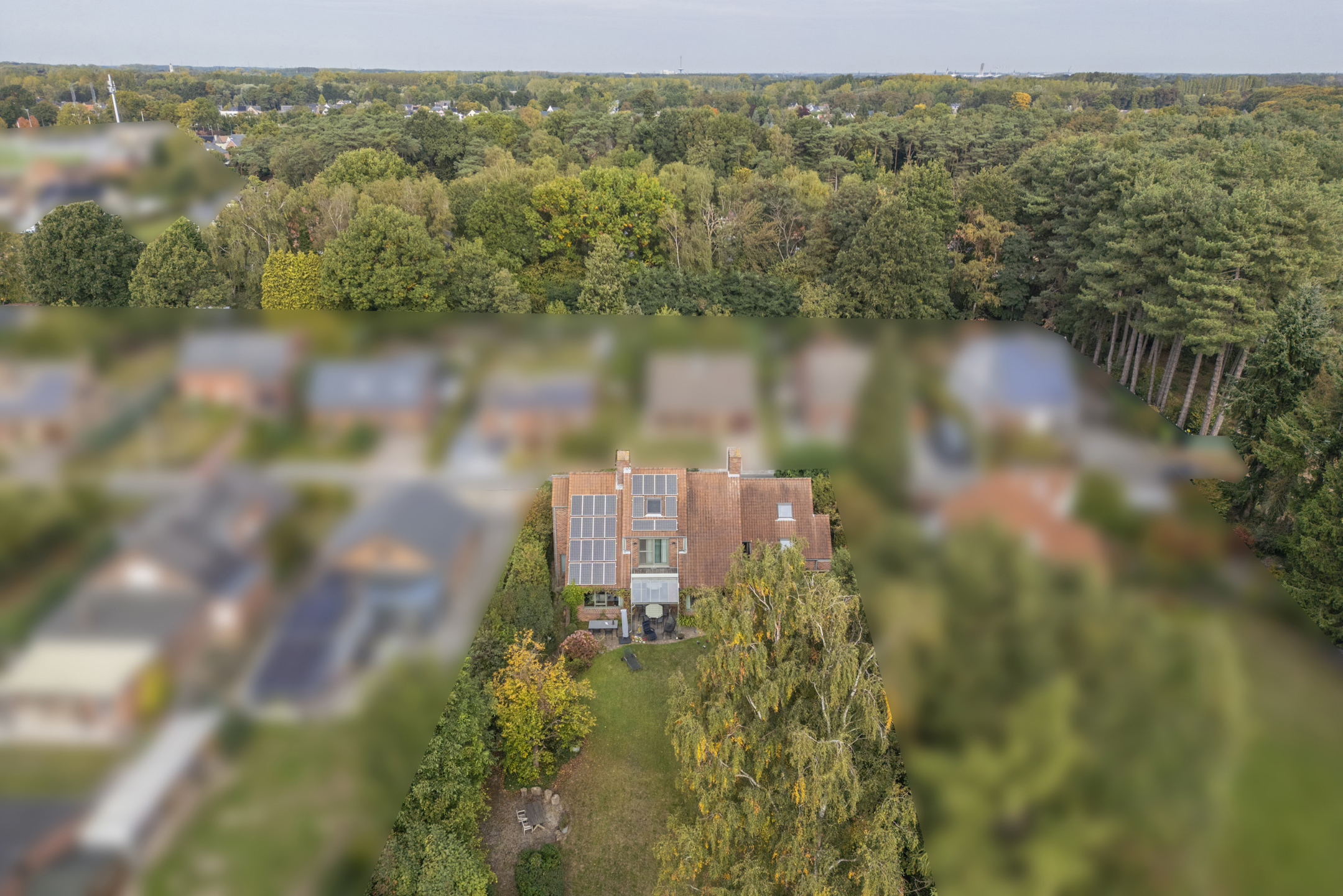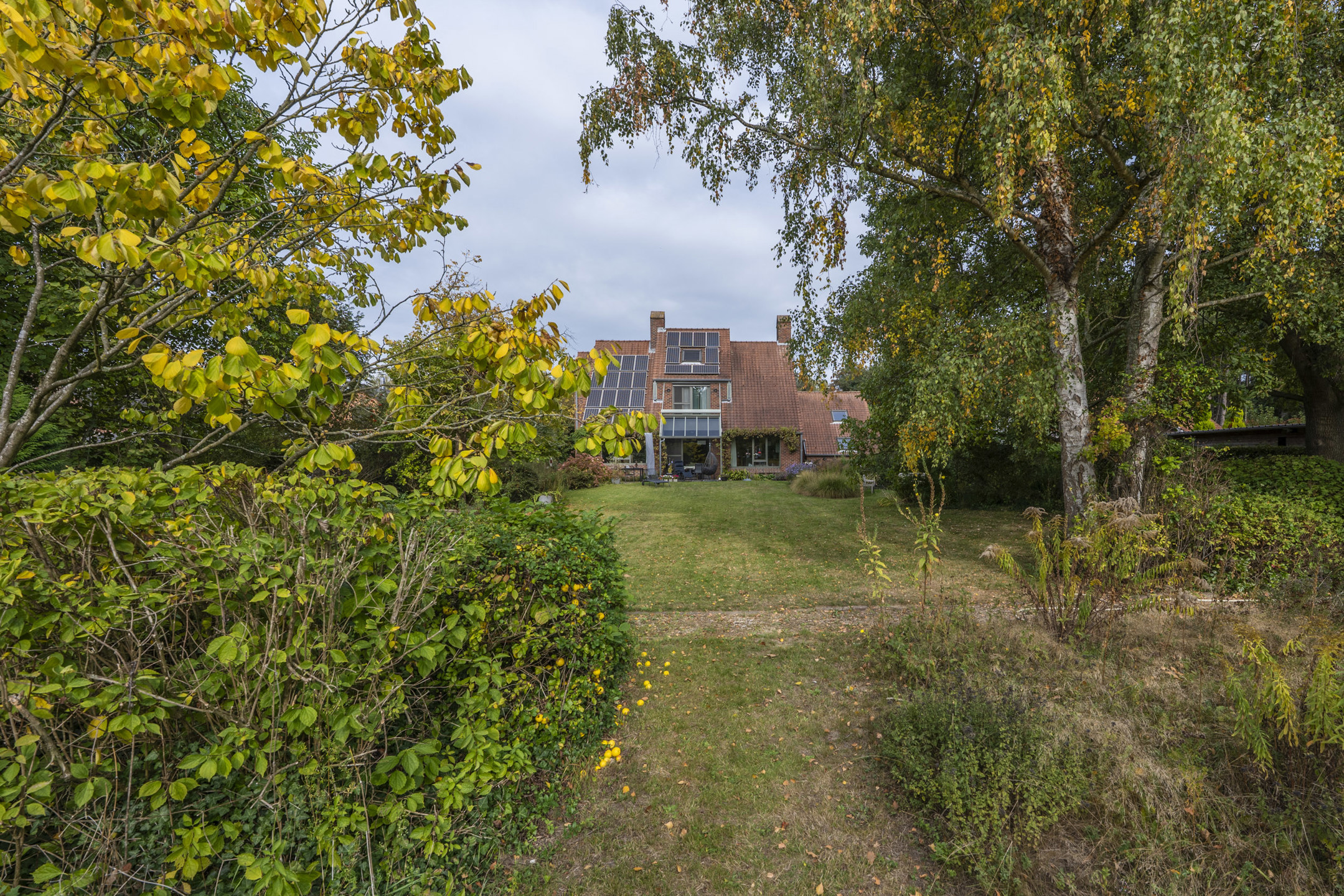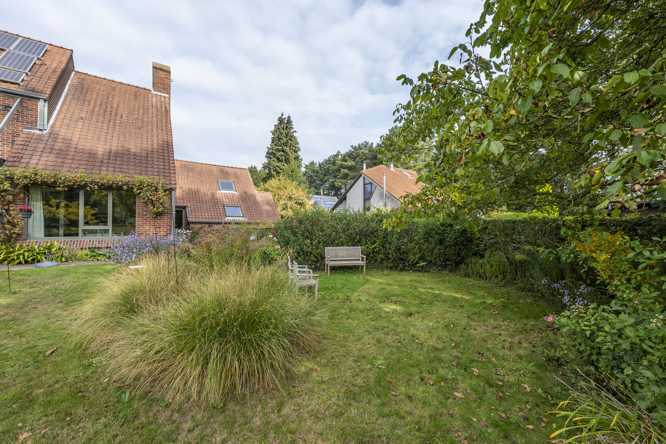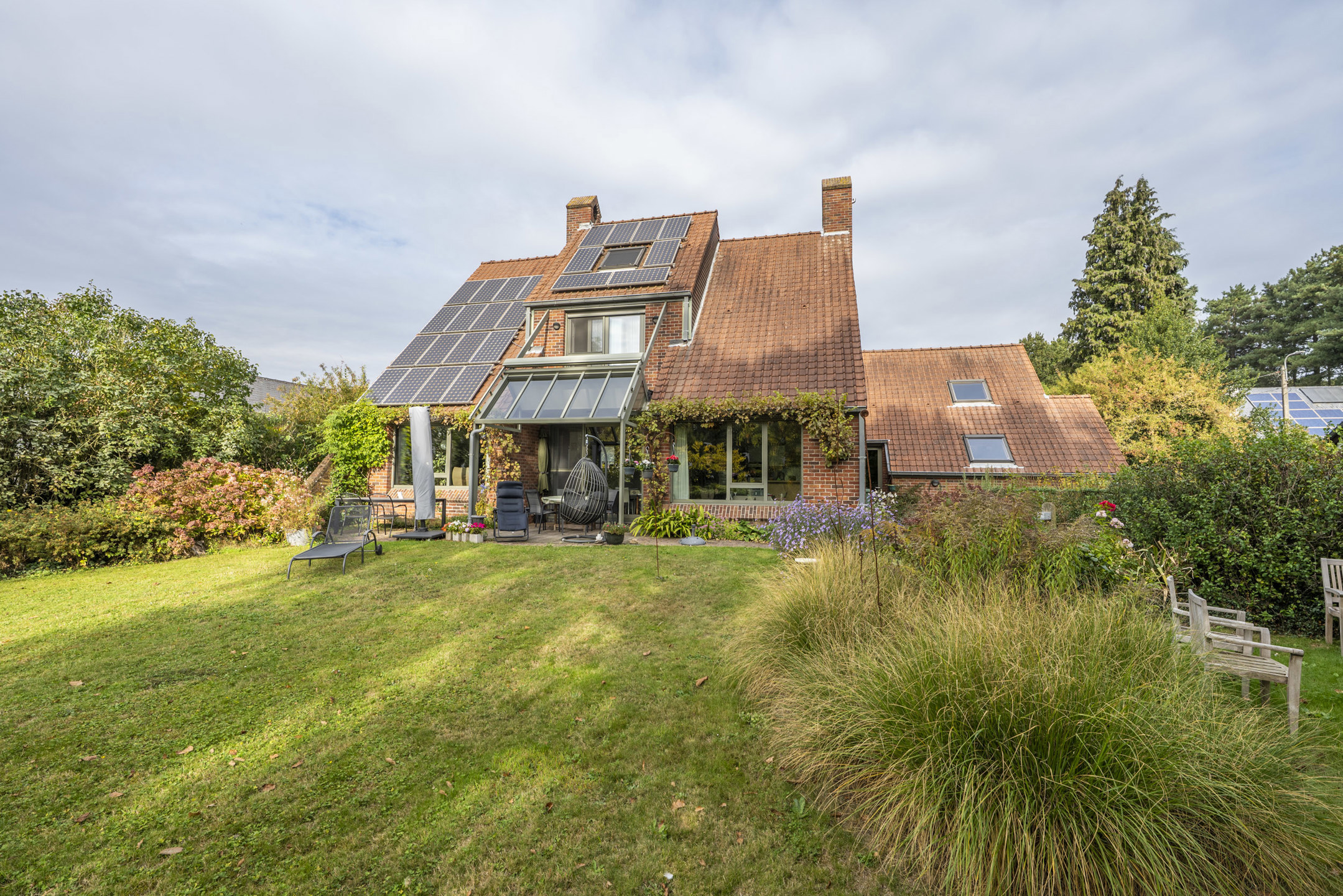 In een doodlopende straat tussen de velden ontdek je deze bijzondere postmodernistische parel gecreëerd door architect Etienne Hoeckx, die een uitzonderlijke aandacht schonk aan bio-ecologische materialen & bouwwijze voor een zo gezond mogelijke leefomgeving. Ook de tuin is doordacht aangelegd als oase van rust, natuurlijk en klimaatvriendelijk, met een variatie aan bloemen, struiken, gezellige zitplekjes en grote bomen, een speelparadijs voor kinderen en een schuilplaats voor vele diertjes.