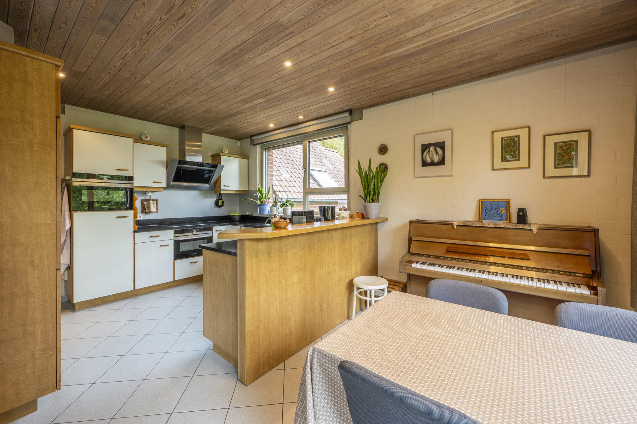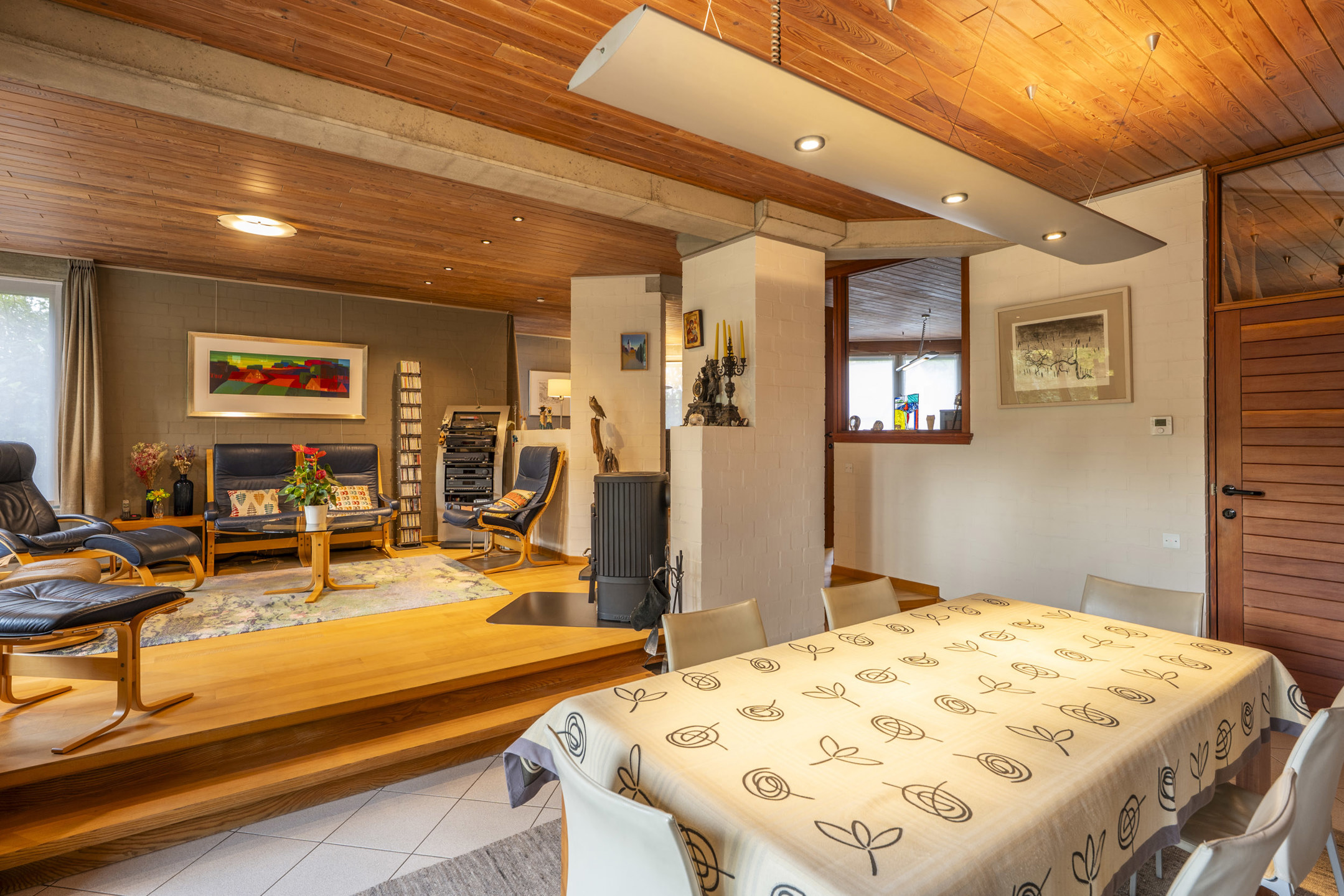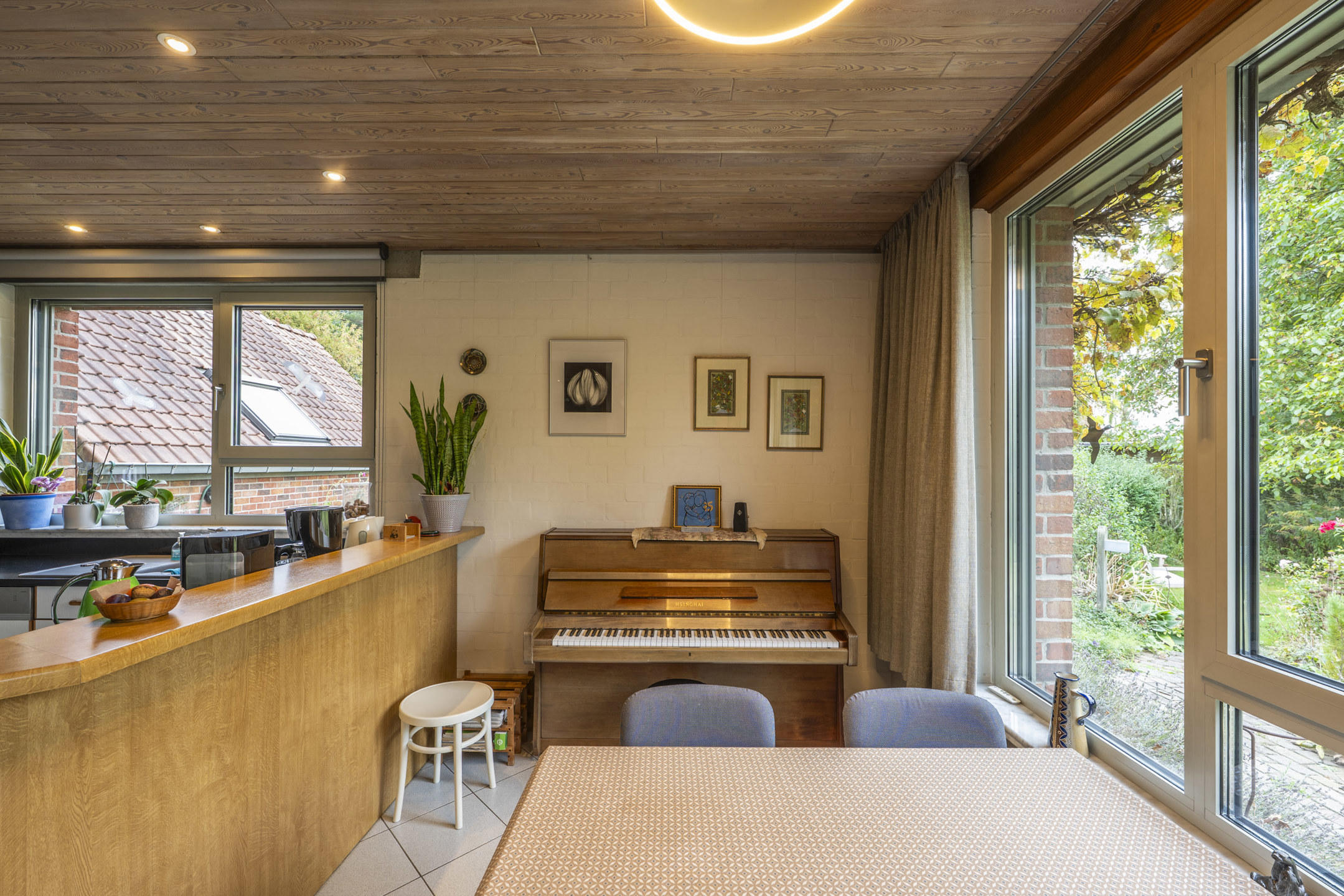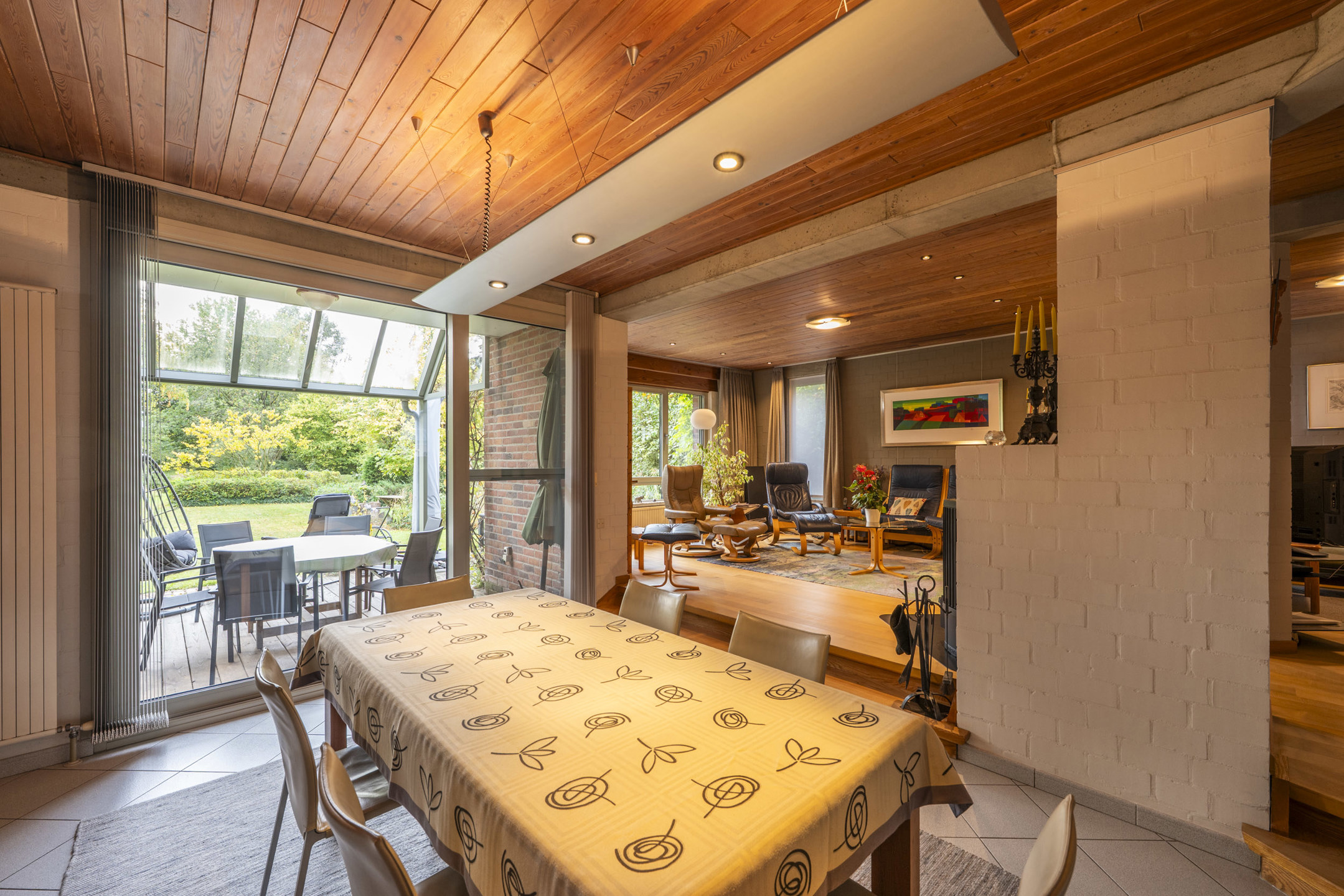 • Een grote ‘splitlevel’ leefruimte: lager gelegen eetkamer met zicht op terras en tuin, en een hoger gelegen gedeelte als gezellige zithoek, mèt een aparte cosy TV-zithoek opzij