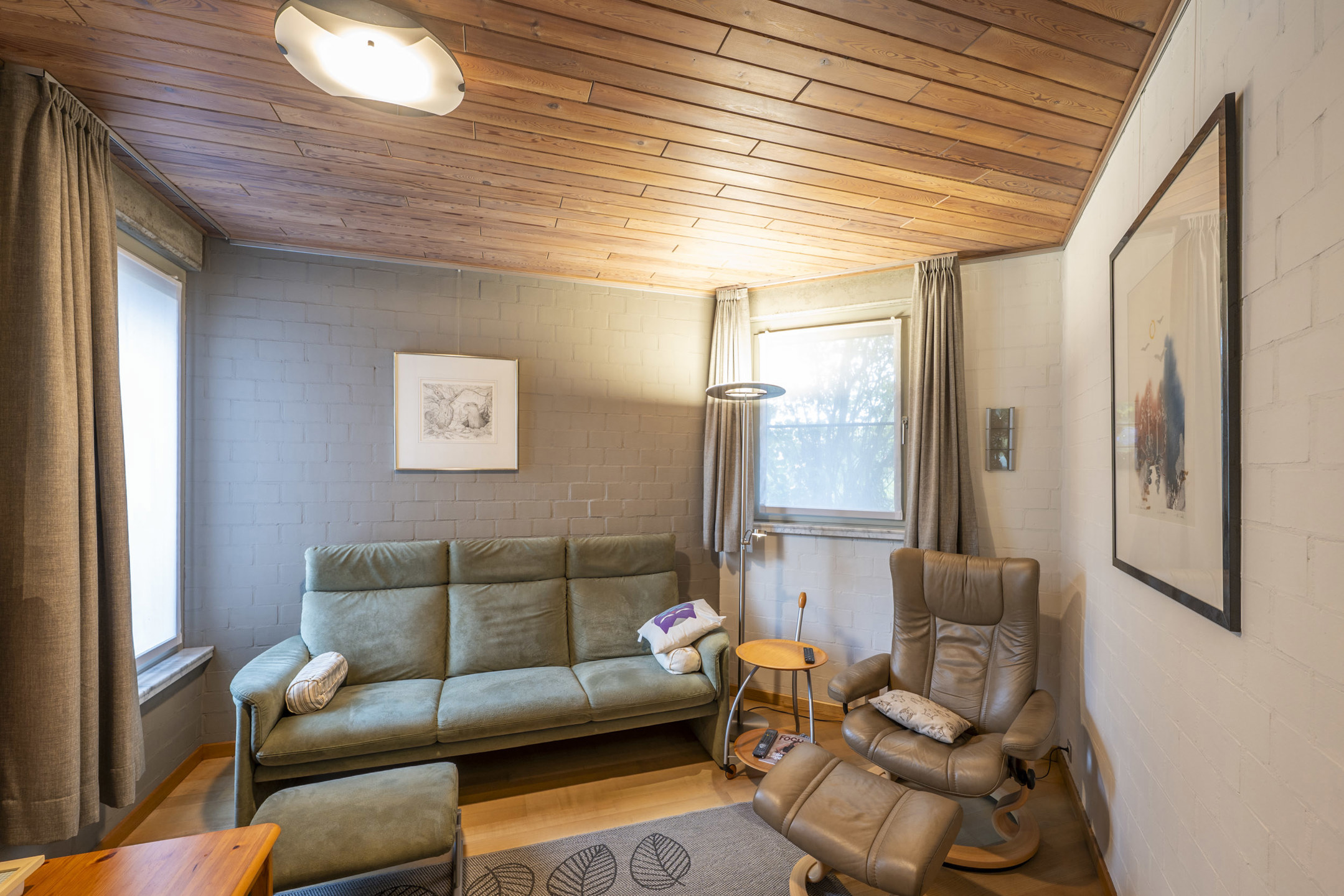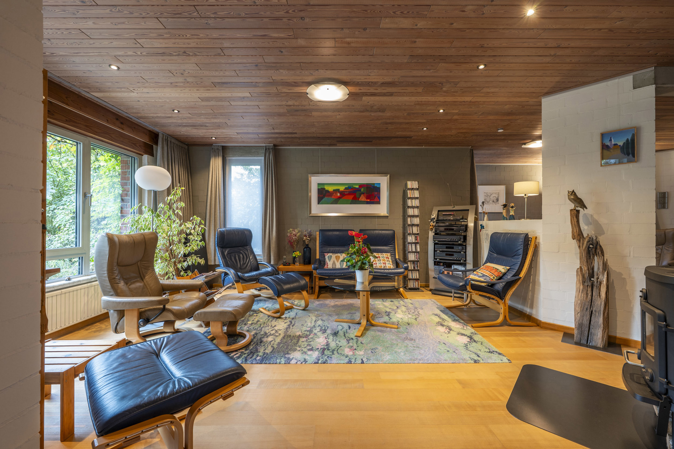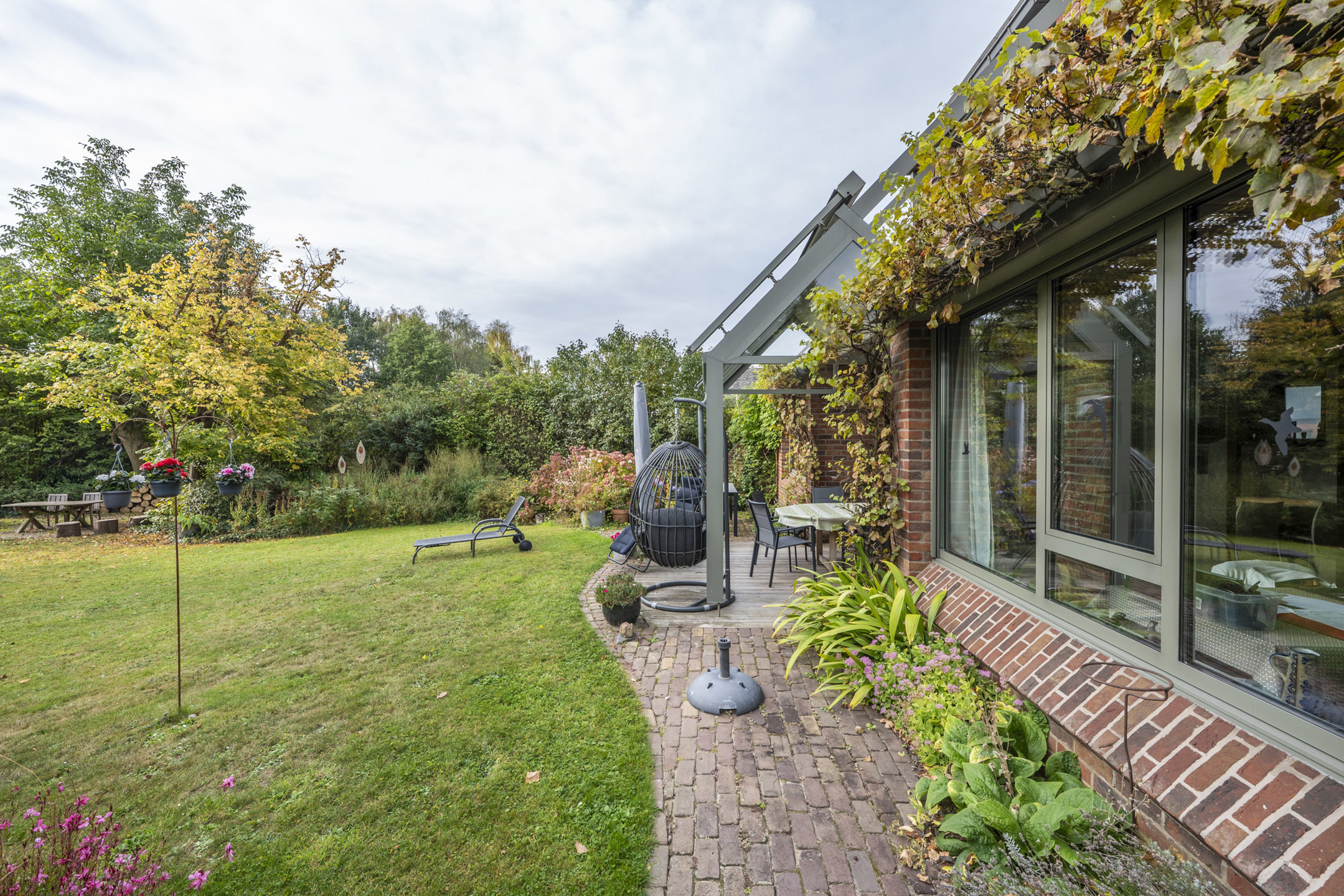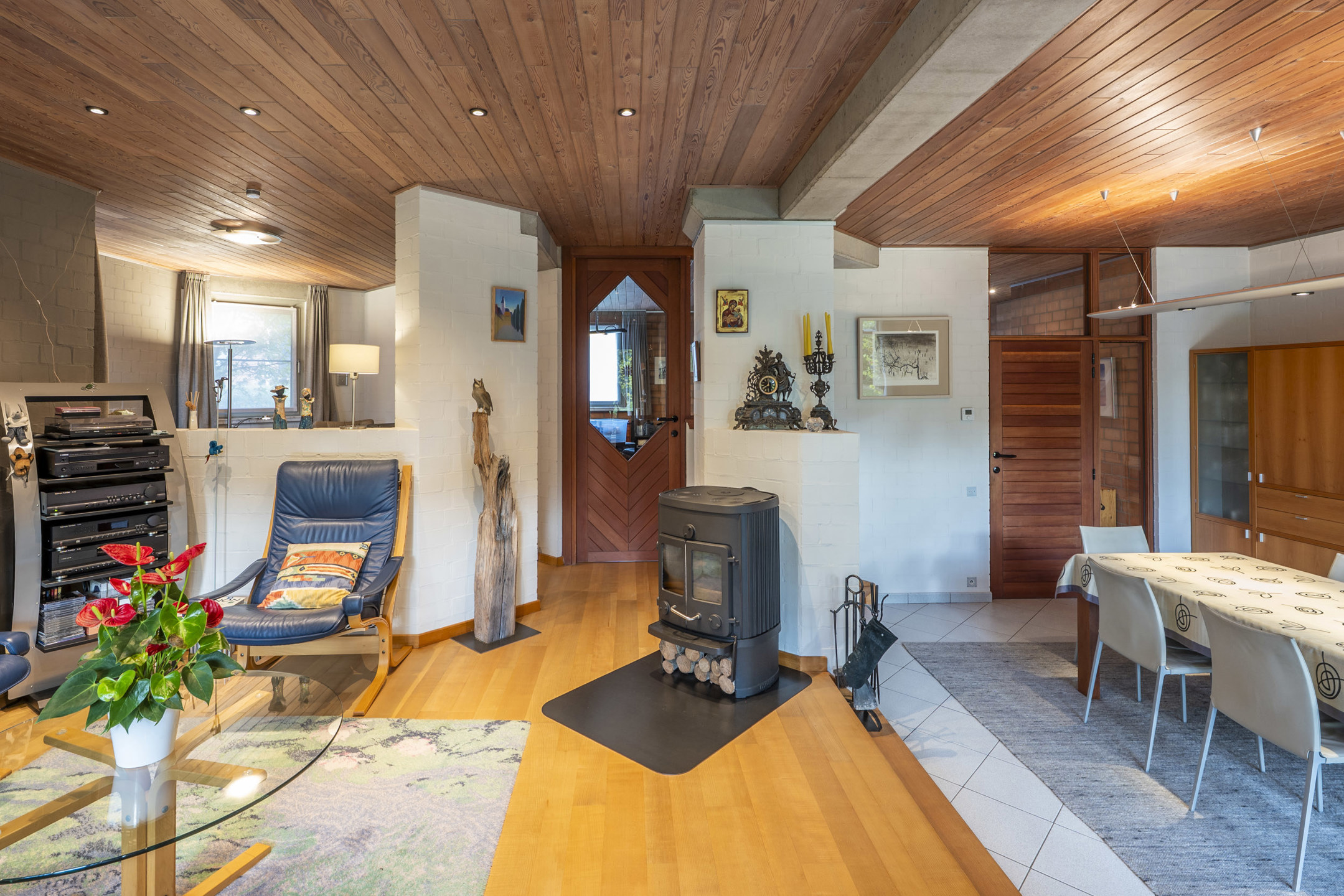 • Een grote ‘splitlevel’ leefruimte: lager gelegen eetkamer met zicht op terras en tuin, en een hoger gelegen gedeelte als gezellige zithoek, mèt een aparte cosy TV-zithoek opzij
