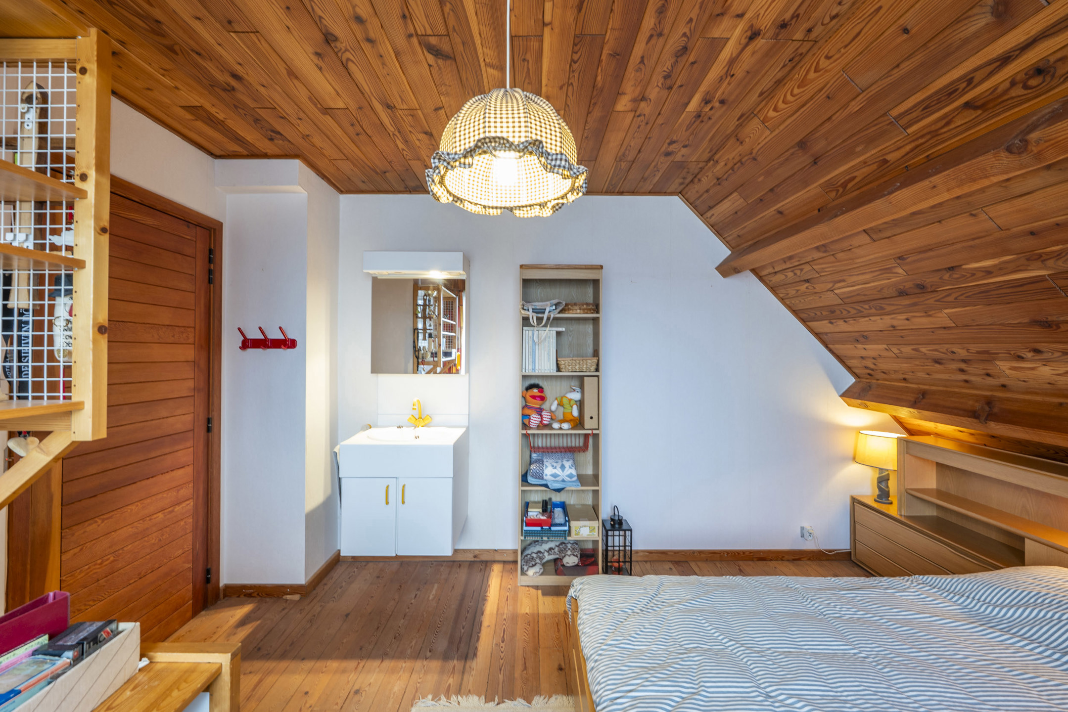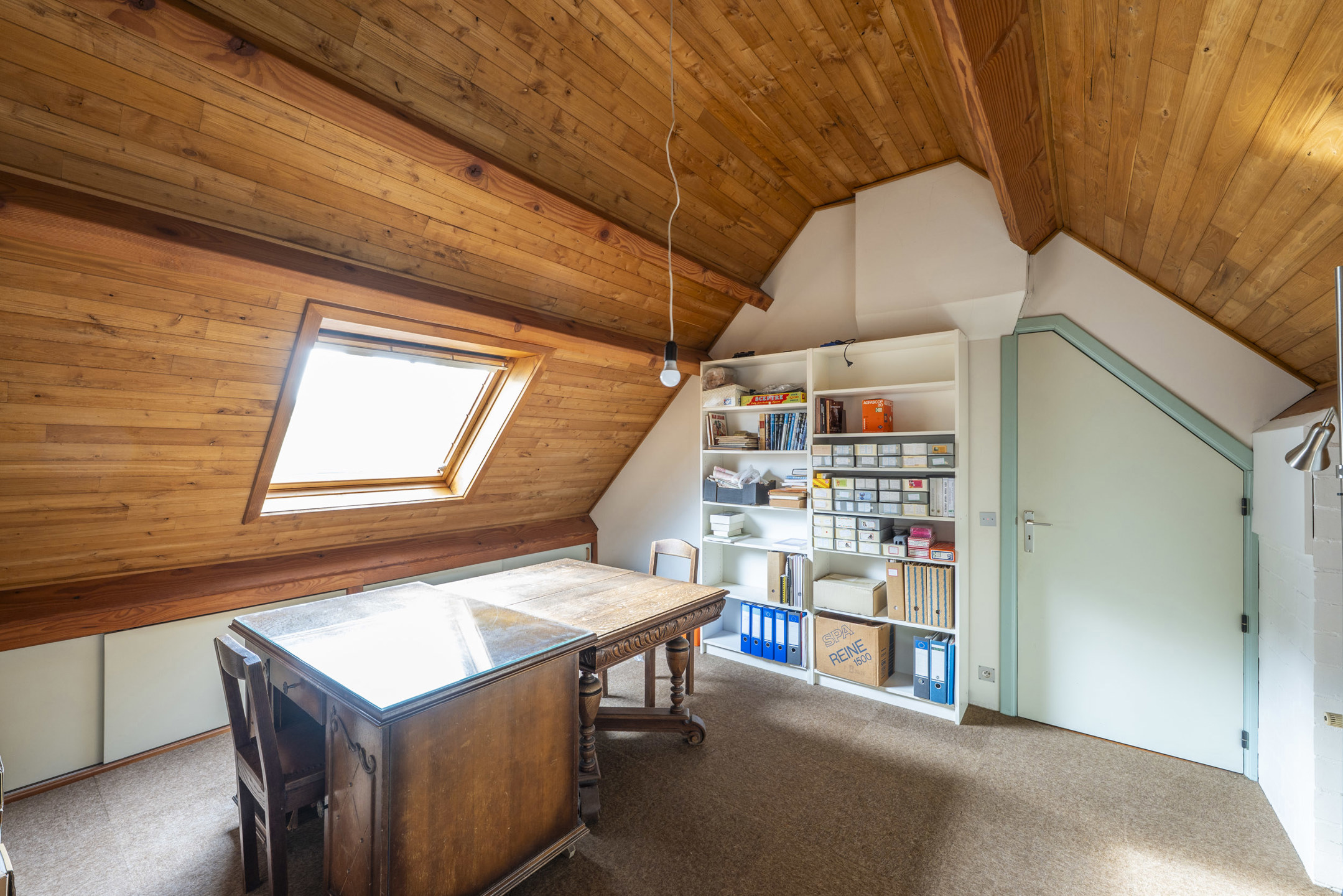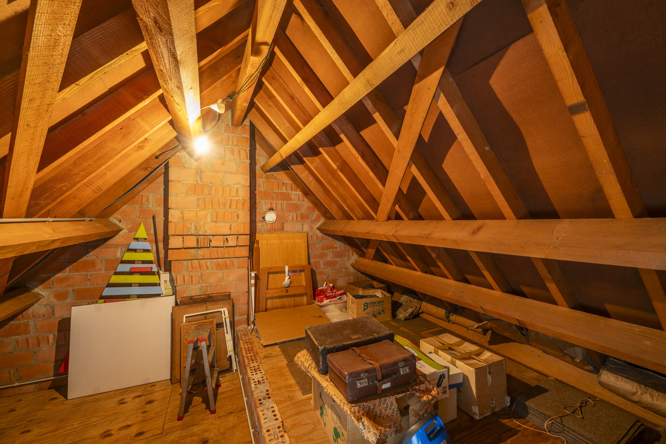 Vaste trap naar 2 zoldertjes en een 5e ruime slaap-of hobbykamer
