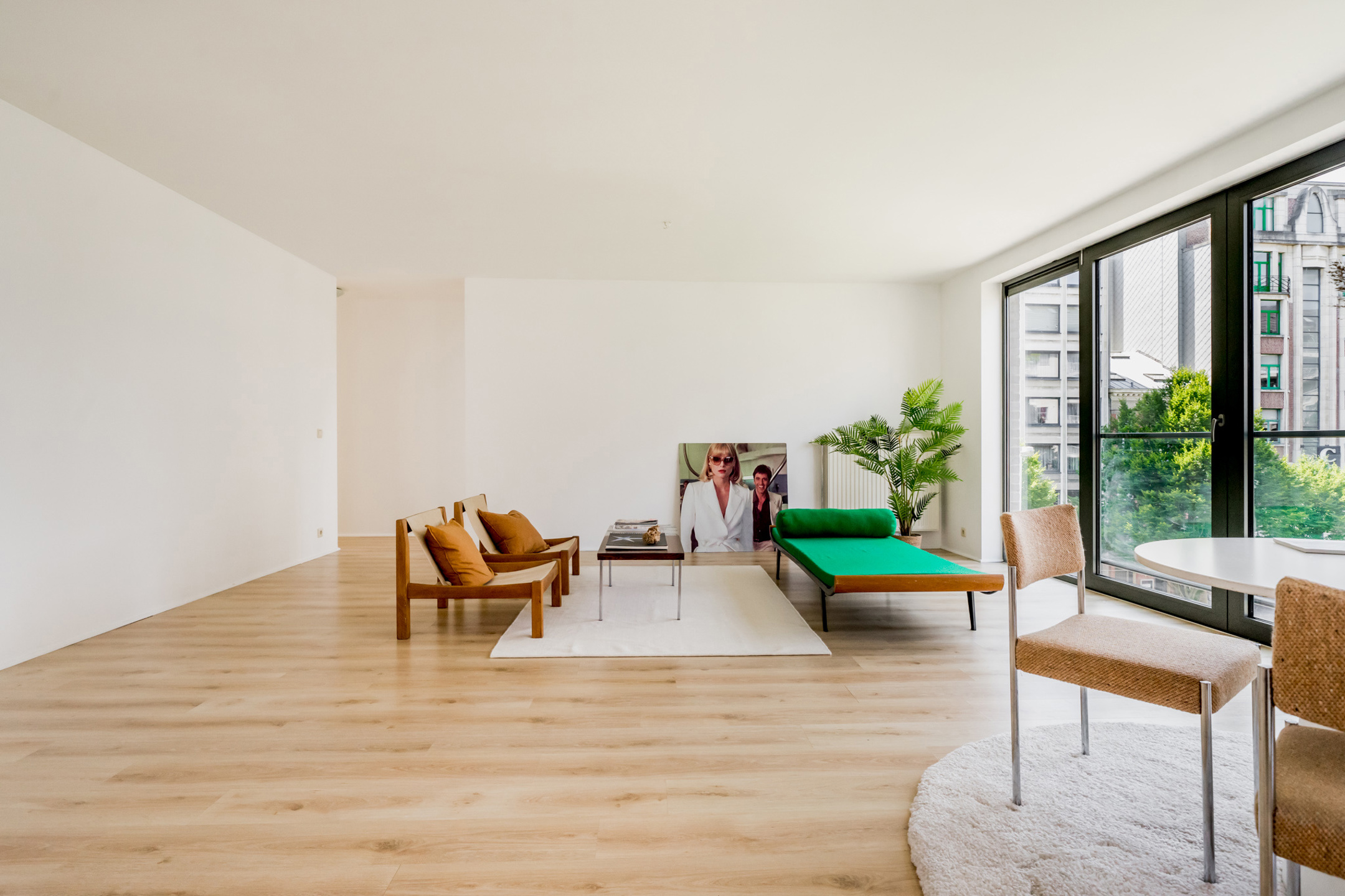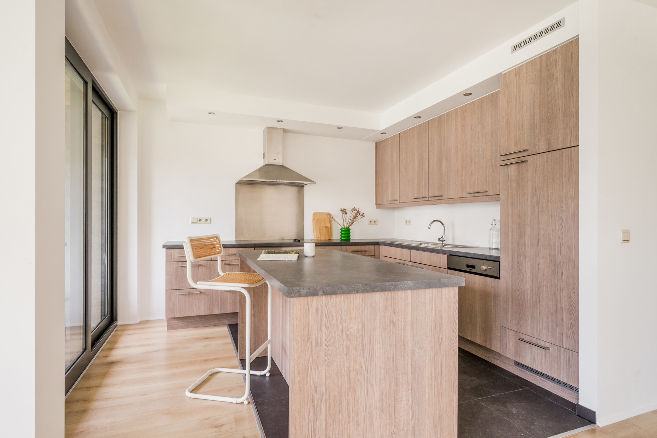De ruime, lichtrijke woonkamer met ramen tot op de vloer springt meteen in het oog. De open keuken is volledig uitgerust met kookeiland, eetgedeelte en alle toestellen. Aansluitend bevindt zich een berging met aansluiting voor wasmachine en droogkast. Via het schuifraam bereik je het gezellige terras met avondzon, ideaal voor een apéro of brunch.
